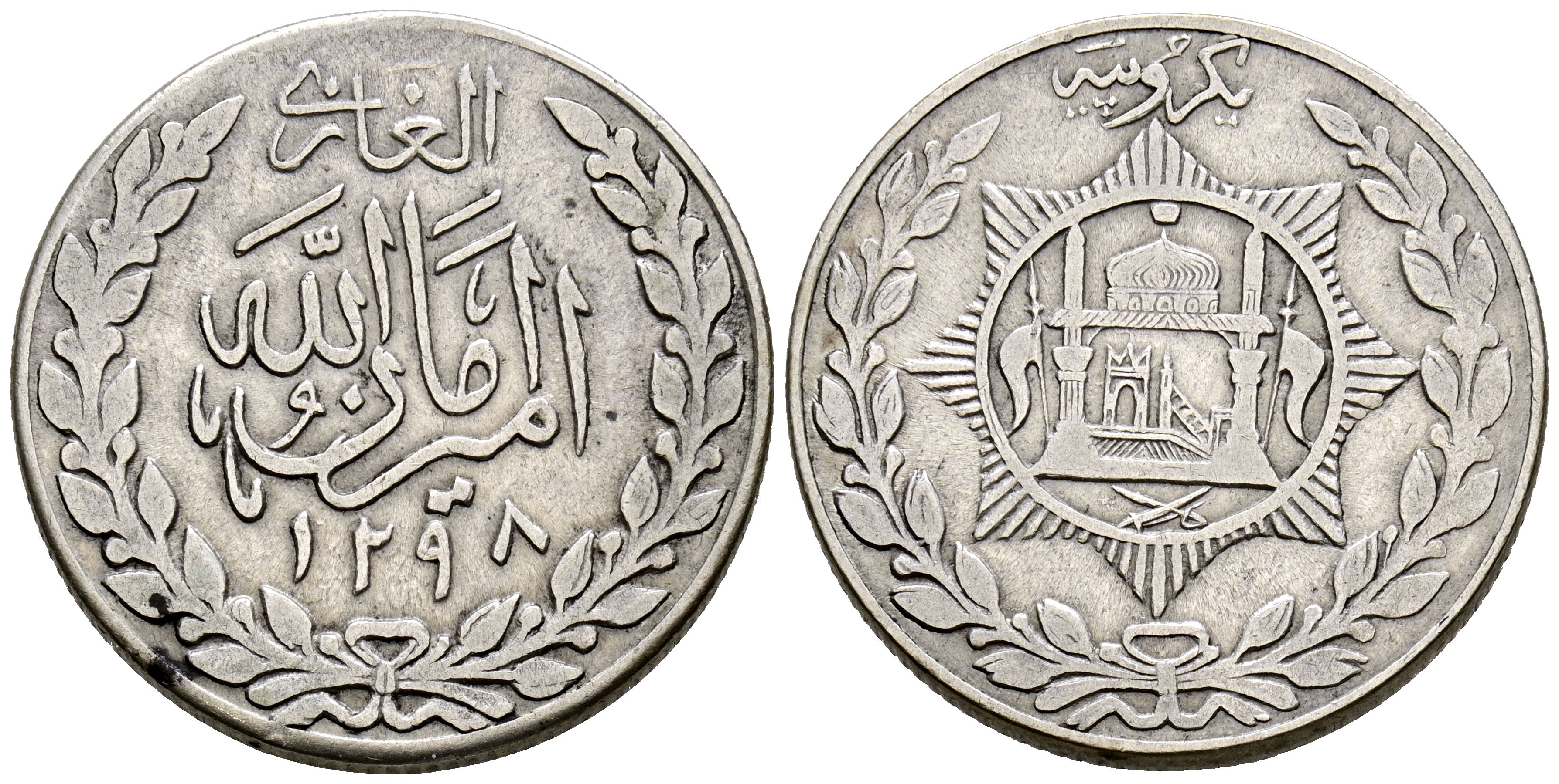 AFGANISTÁN. 1 Rupia (Ar. 9,16g/25mm). 1919 (1337 AH). Amanullah. (Km#877). MBC+.