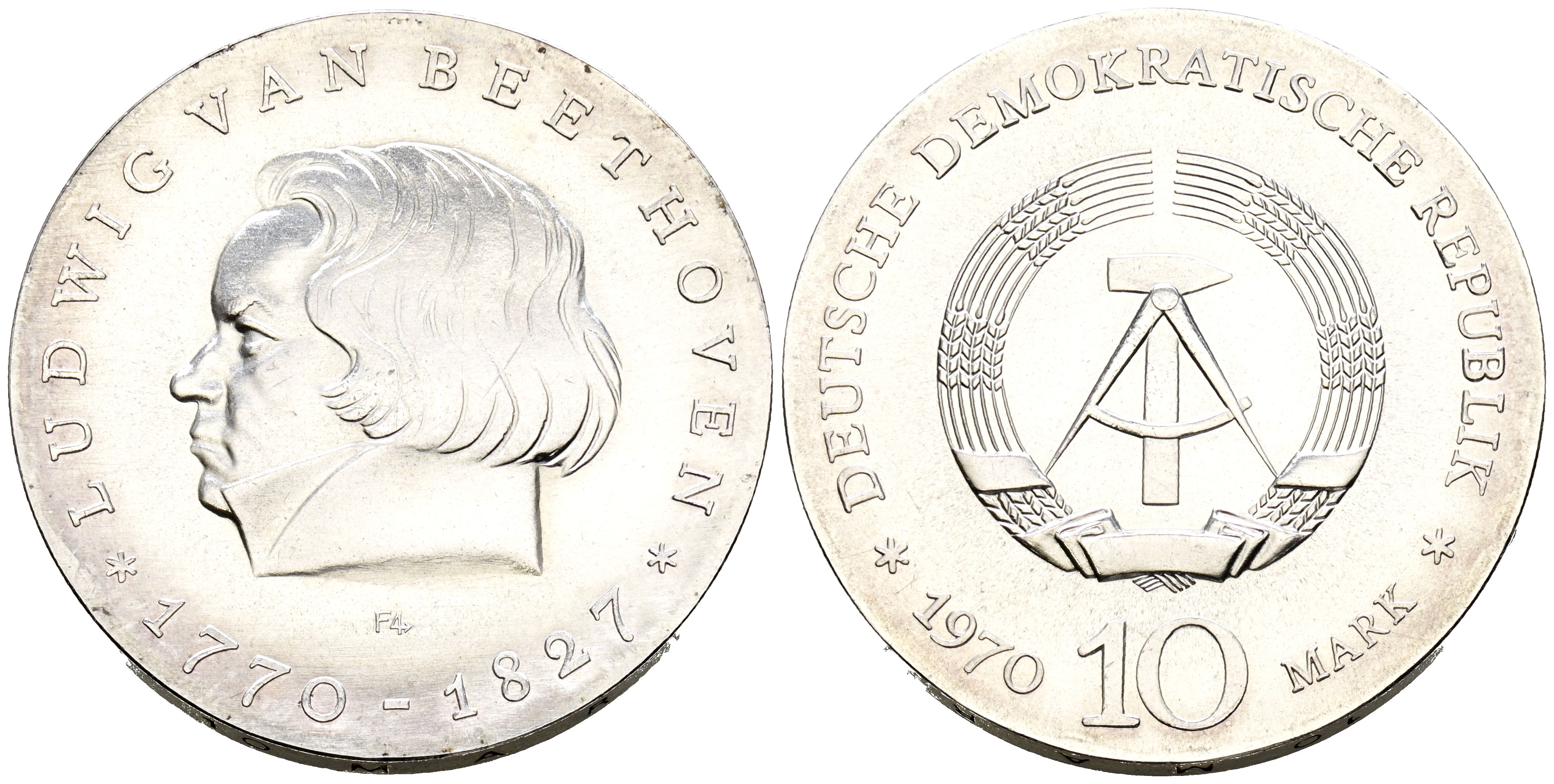 ALEMANIA. 10 Mark (Ar. 16,93g/31mm). 1970. RDA. Ludwig van Beethoven. (Km#27). SC-.