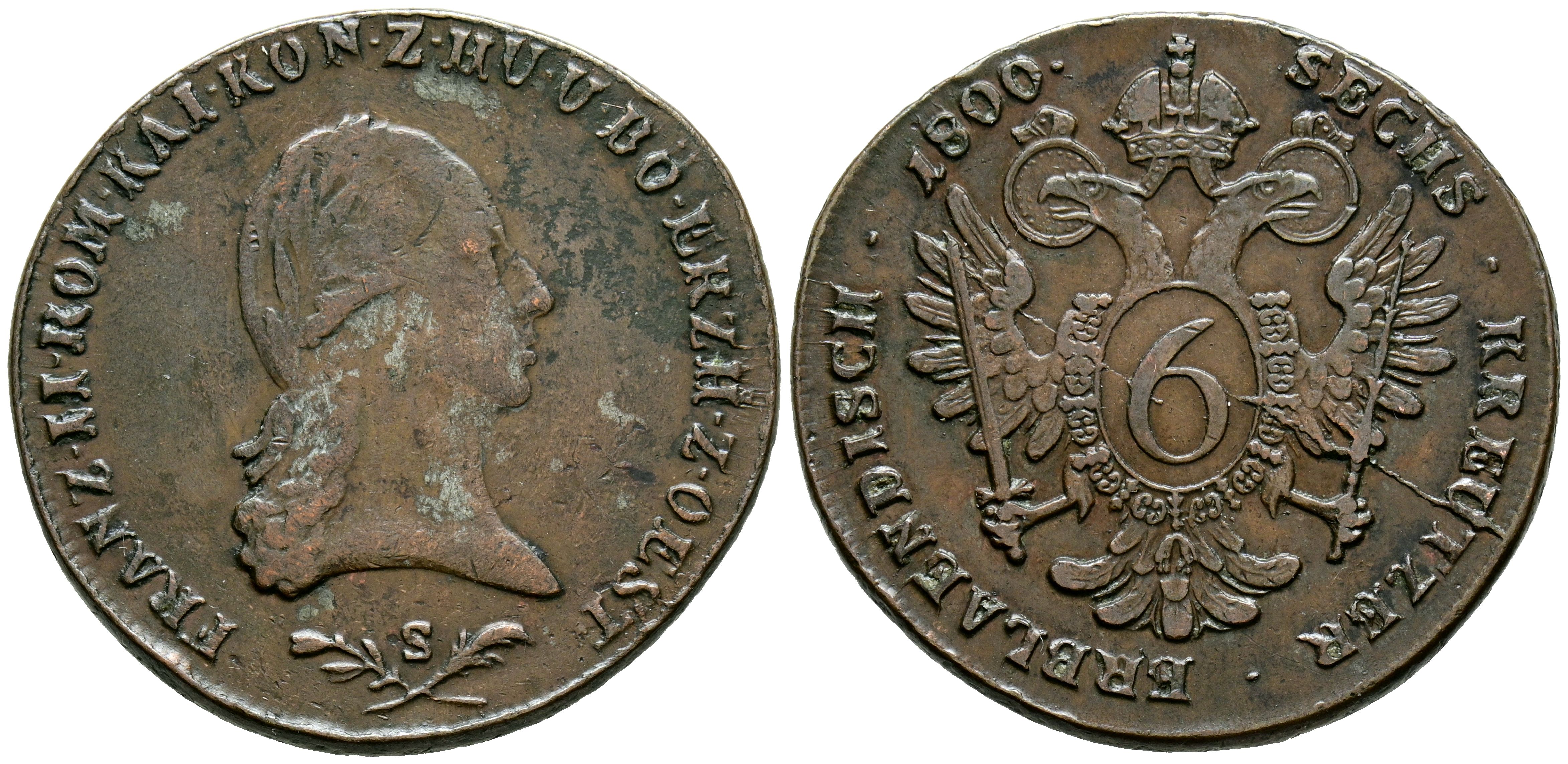 AUSTRIA, Franz II. 6 Kreuzer. (Ae. 12,78g/33mm). 1800. Smolník S. (Km#2128). MBC/MBC+.
