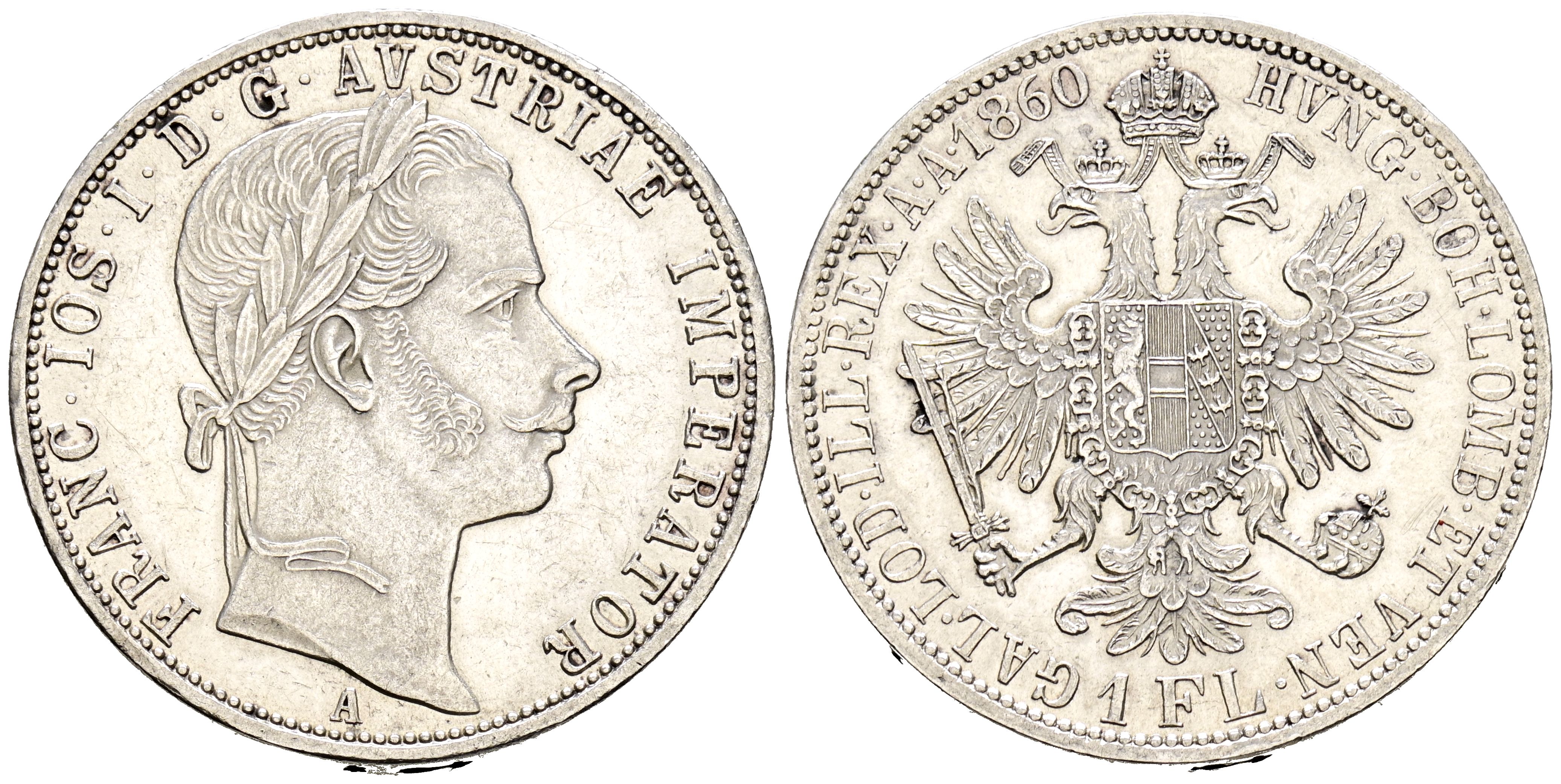 AUSTRIA. 1 Florín (Ar. 12,34g/29mm). 1860. Francisco José I. Viena A. (Km#2219). EBC. Ligeras marquitas.