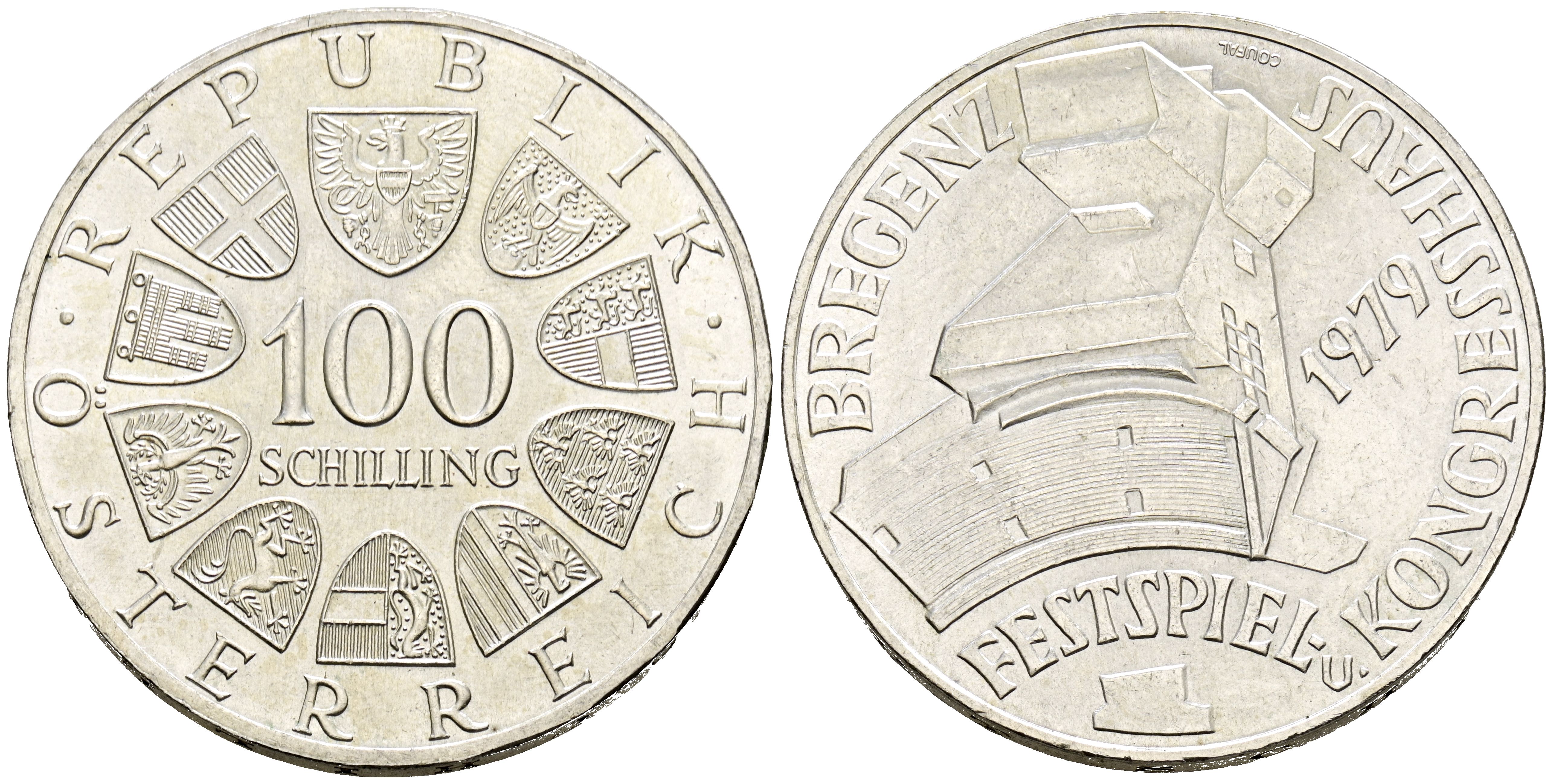AUSTRIA. 100 Schilling (Ar. 23,82g/36mm). 1979. Festival y Congress Hall en Bregenz. (Km#2945). EBC+.