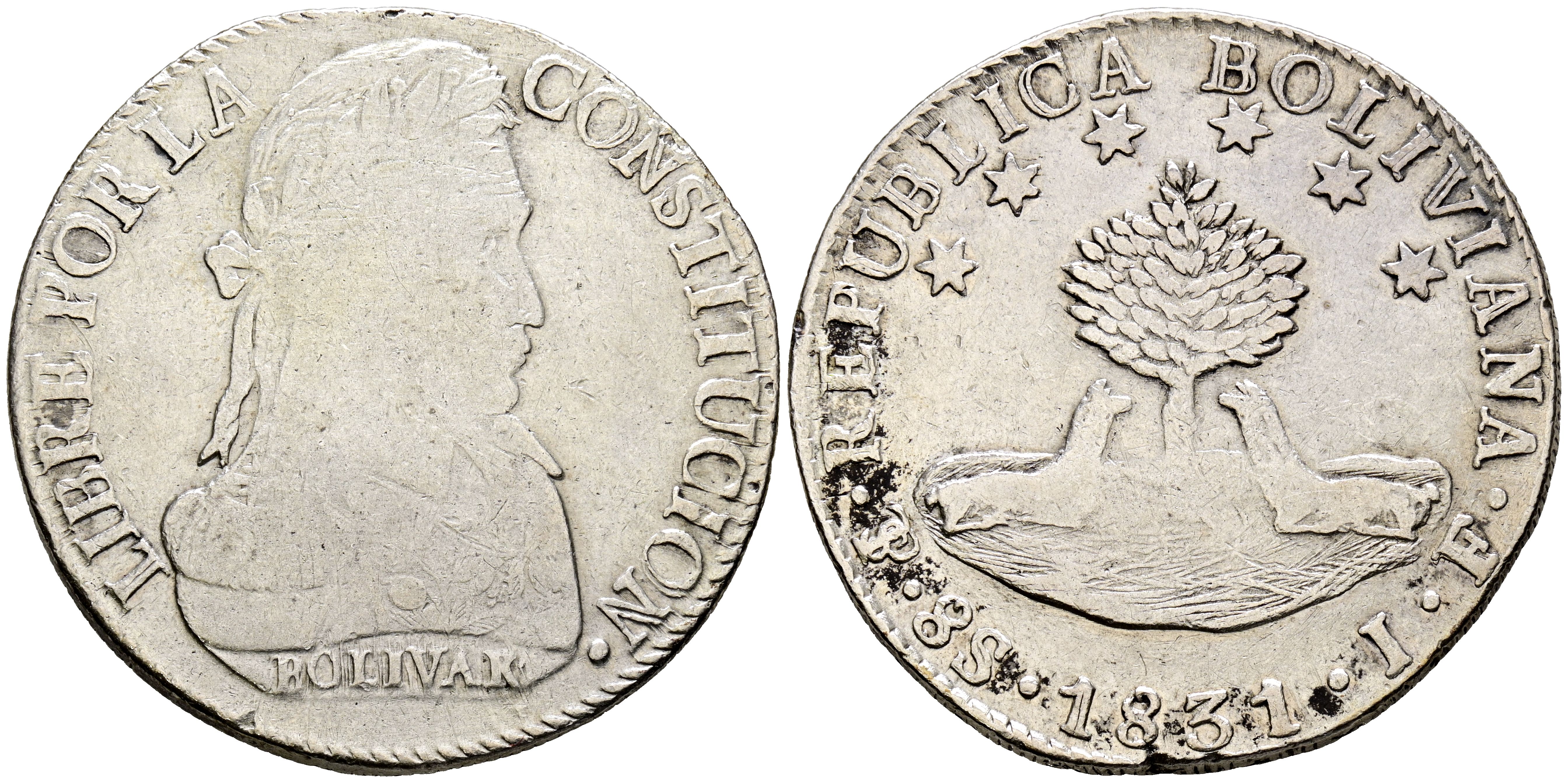BOLIVIA. 8 Soles (Ar. 27,14g/38mm). 1831. Potosí JF. (Km#97). MBC-/MBC.
