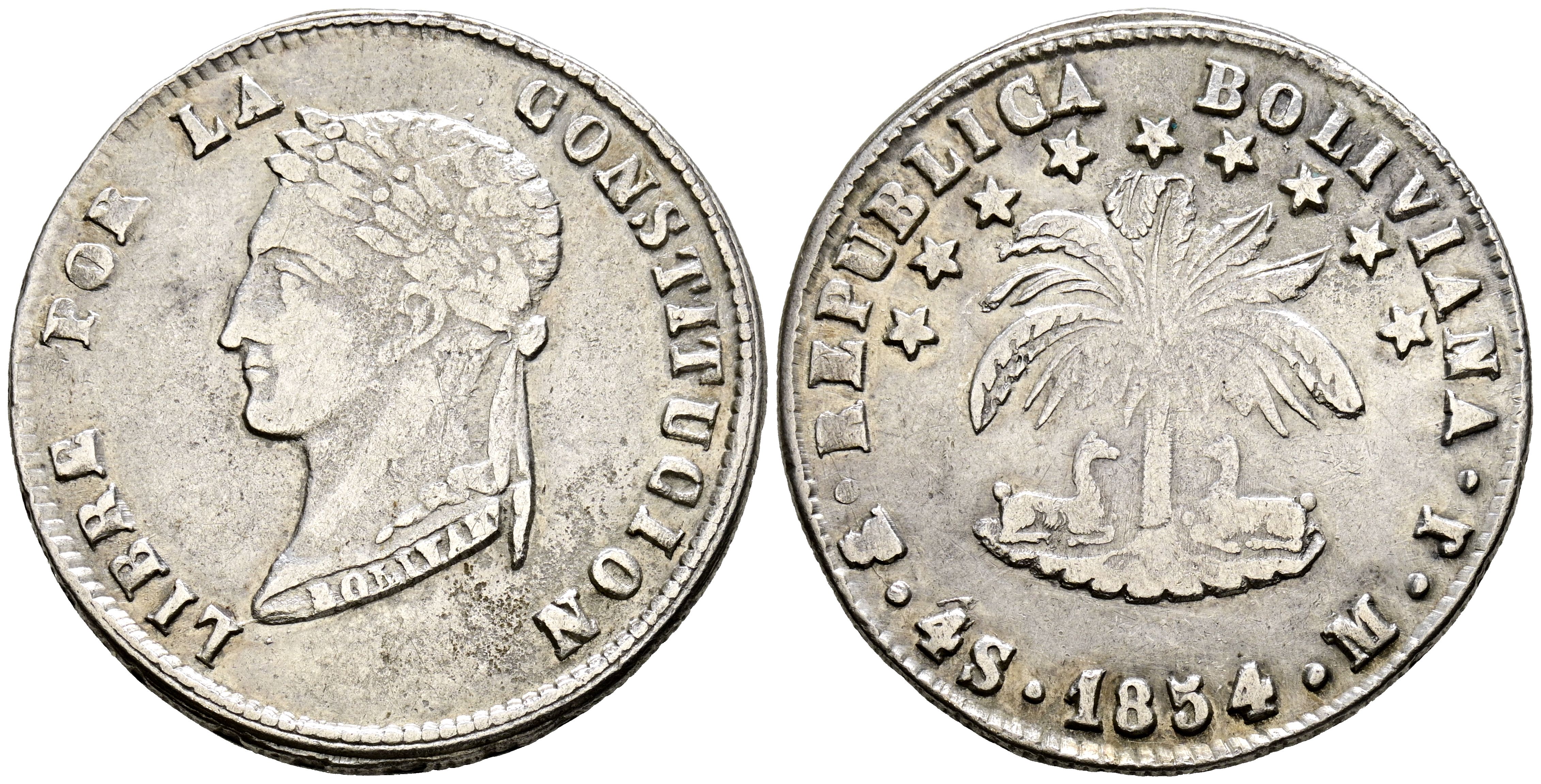 BOLIVIA. 4 Soles (Ar. 13,03g/32mm). 1854. Potosí MJ. (Km#123.2). MBC.