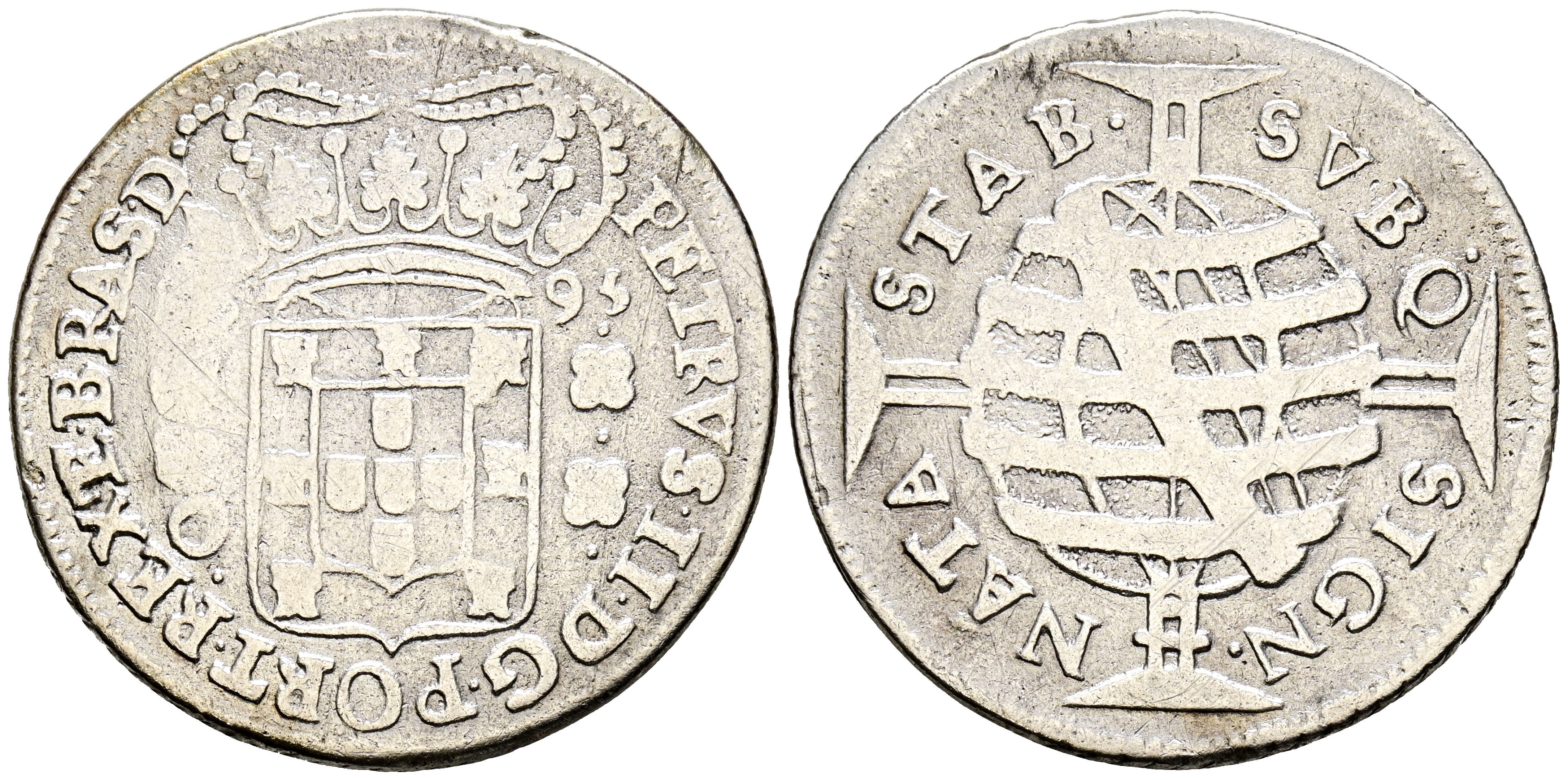 BRASIL. 320 Reis (Ar. 8,70g/31mm). 1695. Pedro II de Portugal. Bahía. (Km#82).BC+. Escasa.