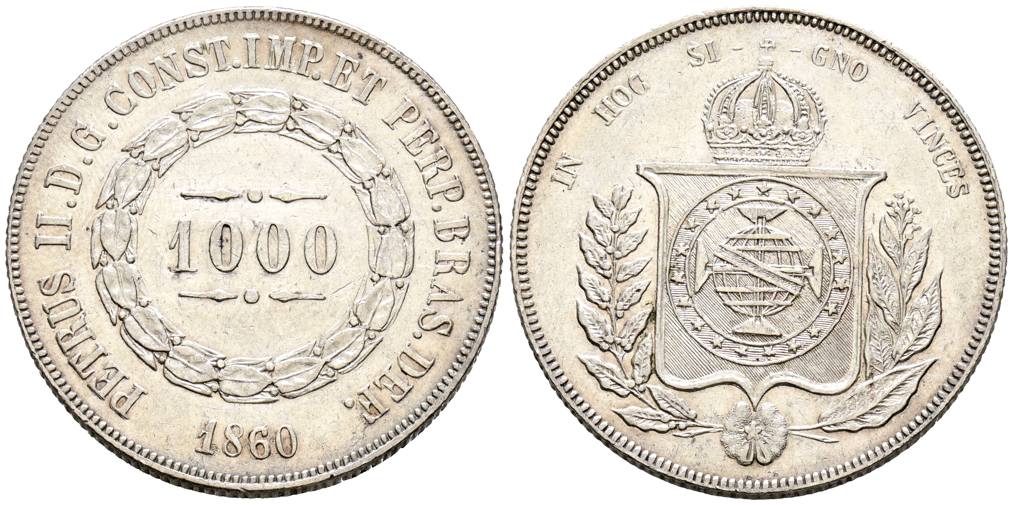 BRASIL, Pedro II. 1000 Reis. (Ar. 12,58g/30mm). 1860. (Km#465). MBC+.