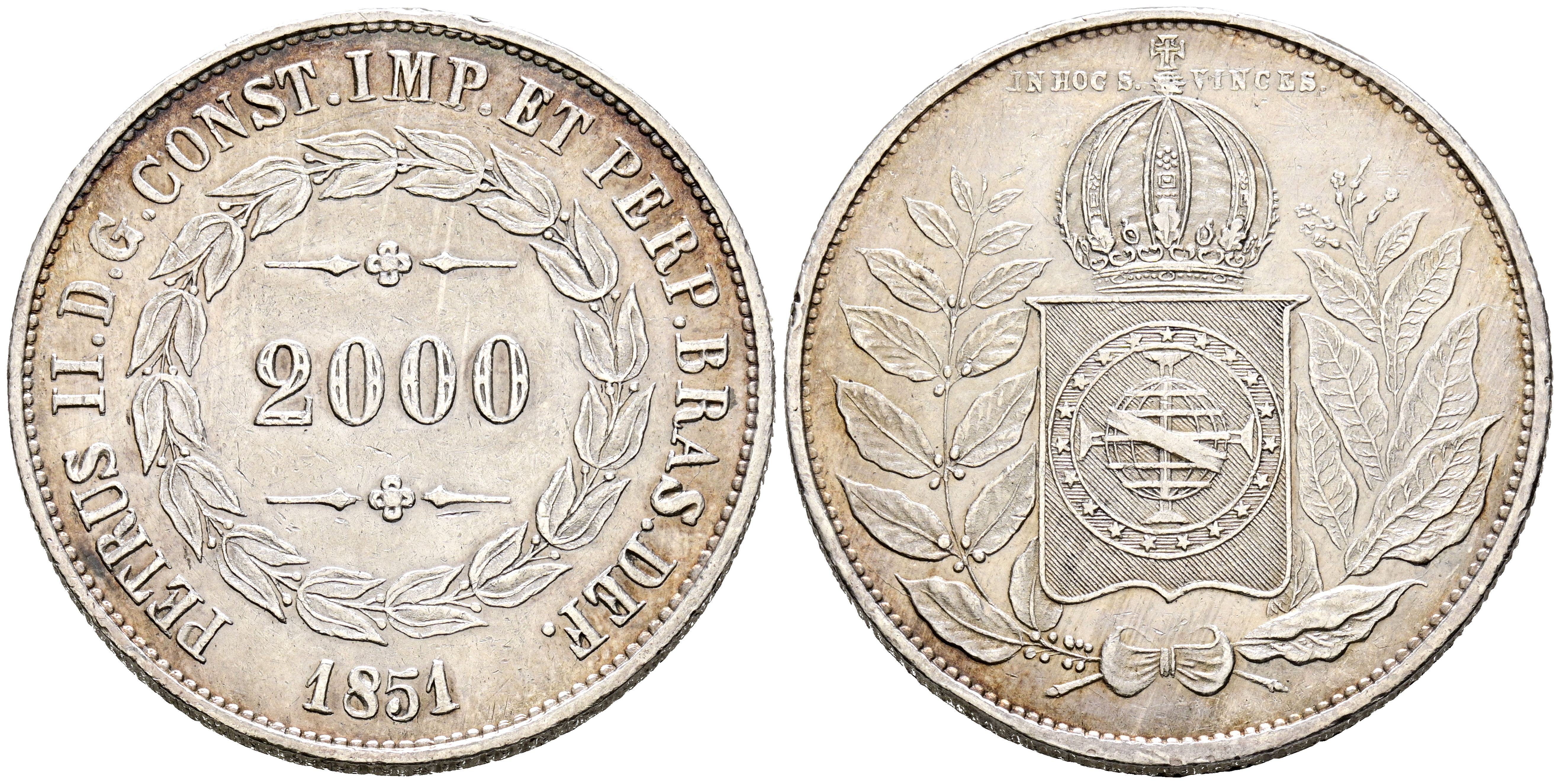 BRASIL, Pedro II. 2000 Reis. (Ar. 25,41g/37mm). 1851. (Km#462). MBC.