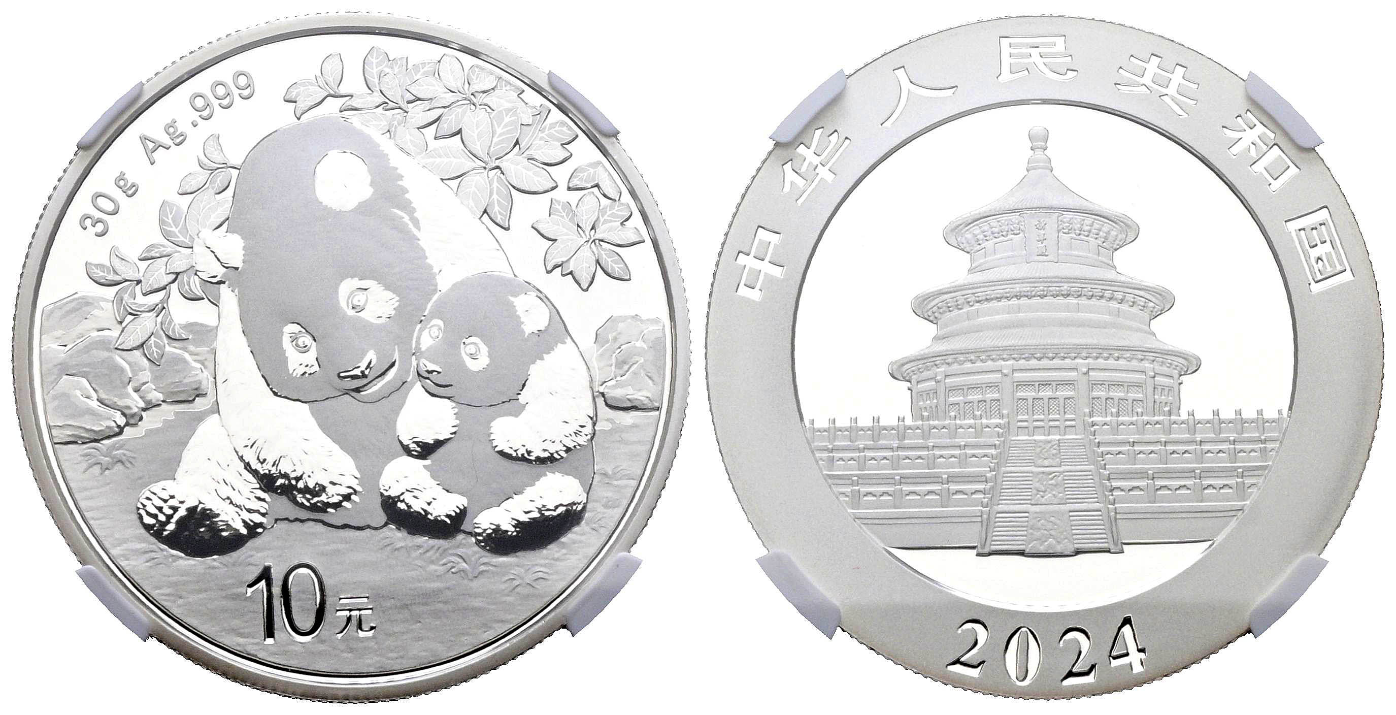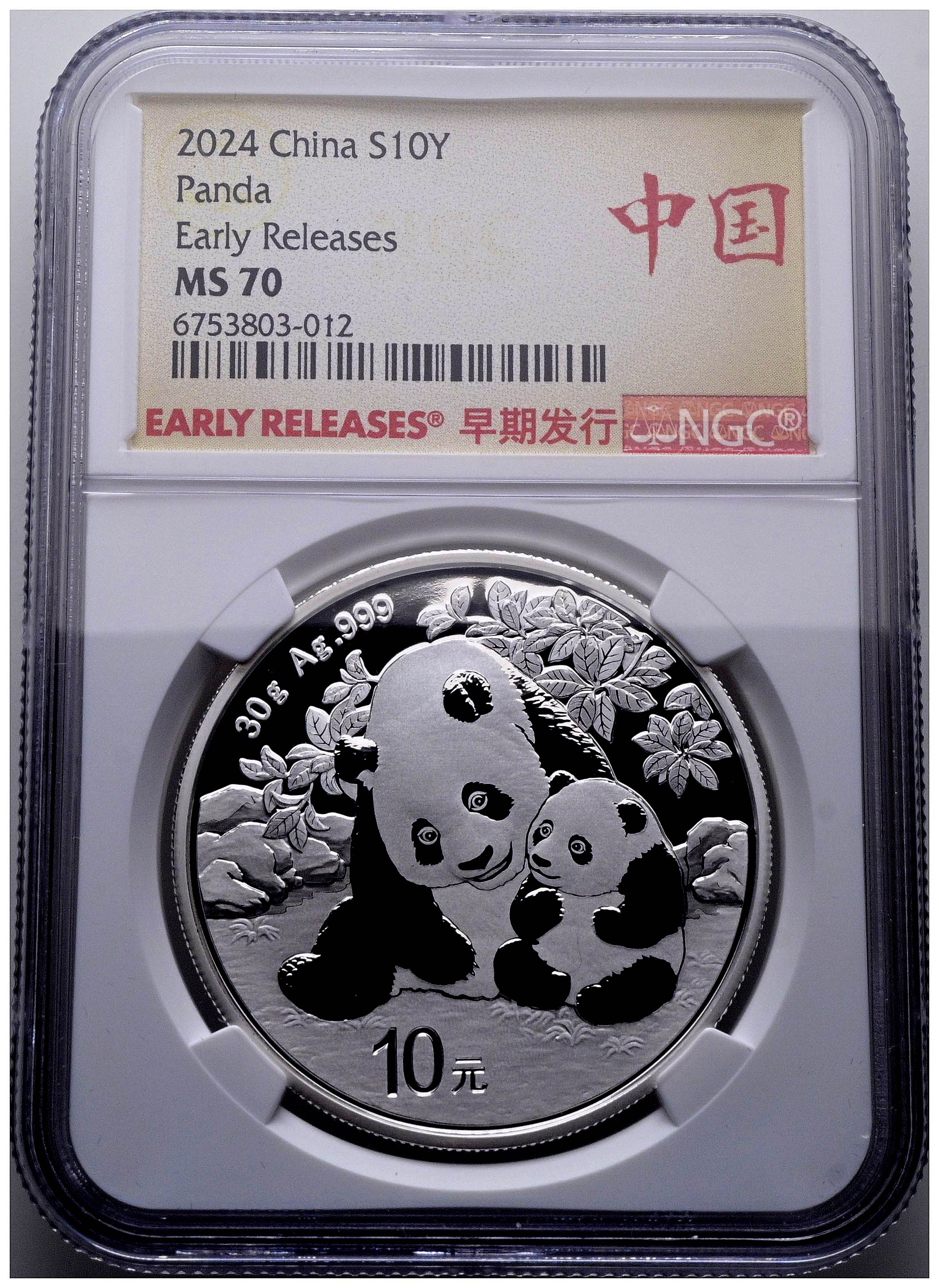 CHINA. 10 Yuan. (Ar. 30,00g/40mm)*. 2024. Serie Panda. Encapsulado por NGC MS 70, Early Releases. *Peso y medidas teóricos.