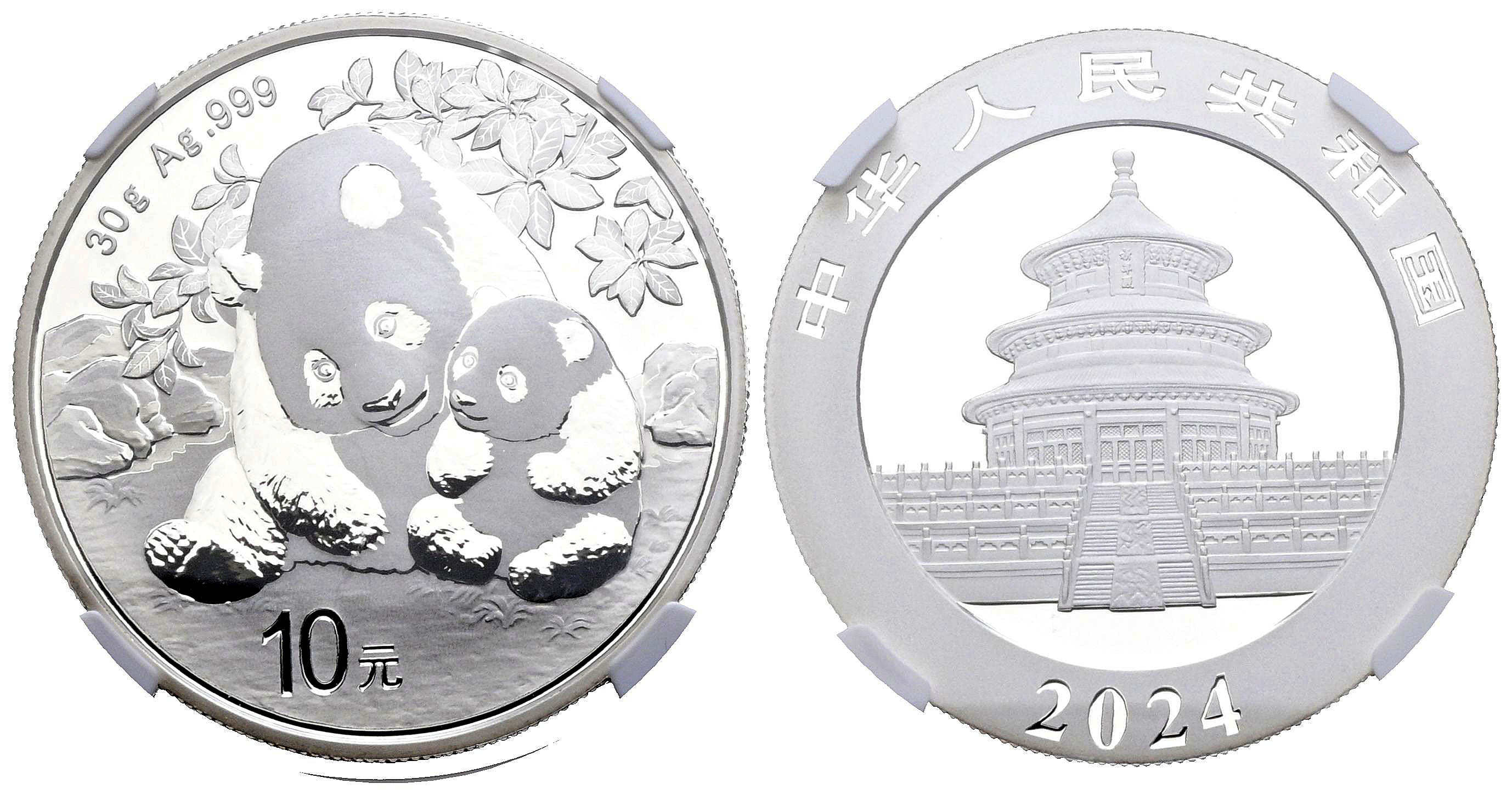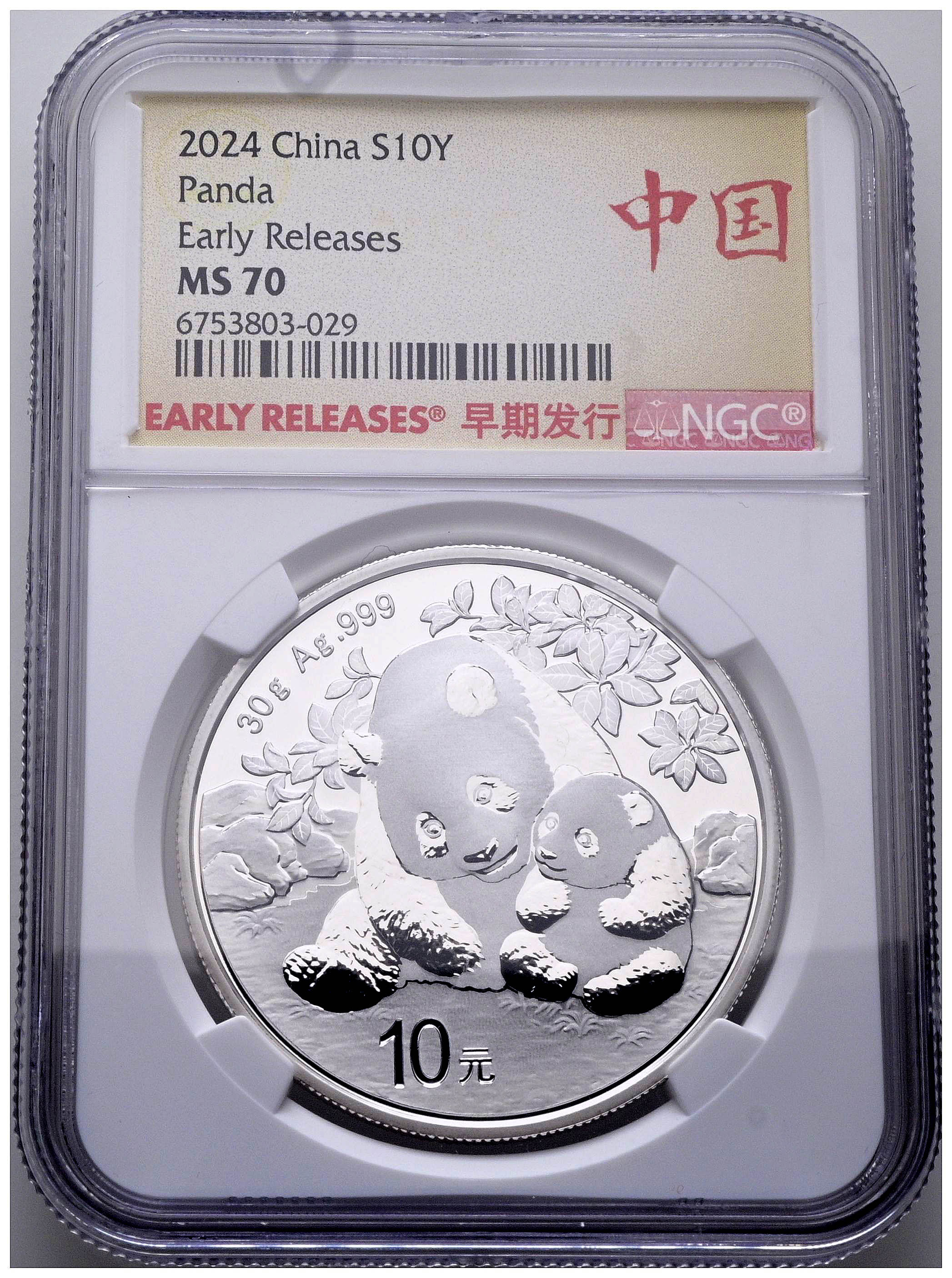 CHINA. 10 Yuan. (Ar. 30,00g/40mm)*. 2024. Serie Panda. Encapsulado por NGC MS 70, Early Releases. *Peso y medidas teóricos.