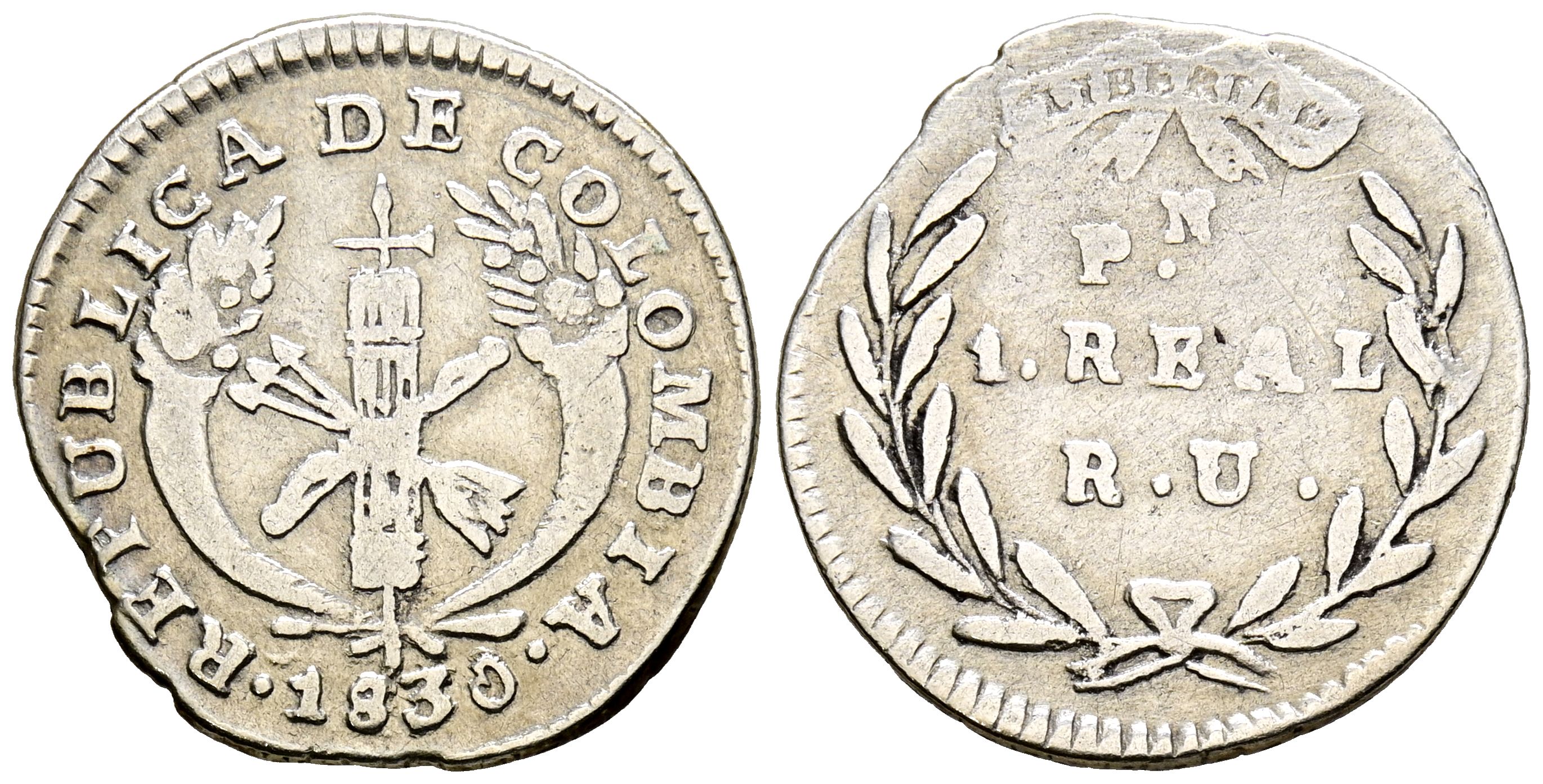 COLOMBIA. 1 Real. (Ar. 2,70g /19mm). 1830. Popayán RU. (Km#87.2). MBC. Escasa.