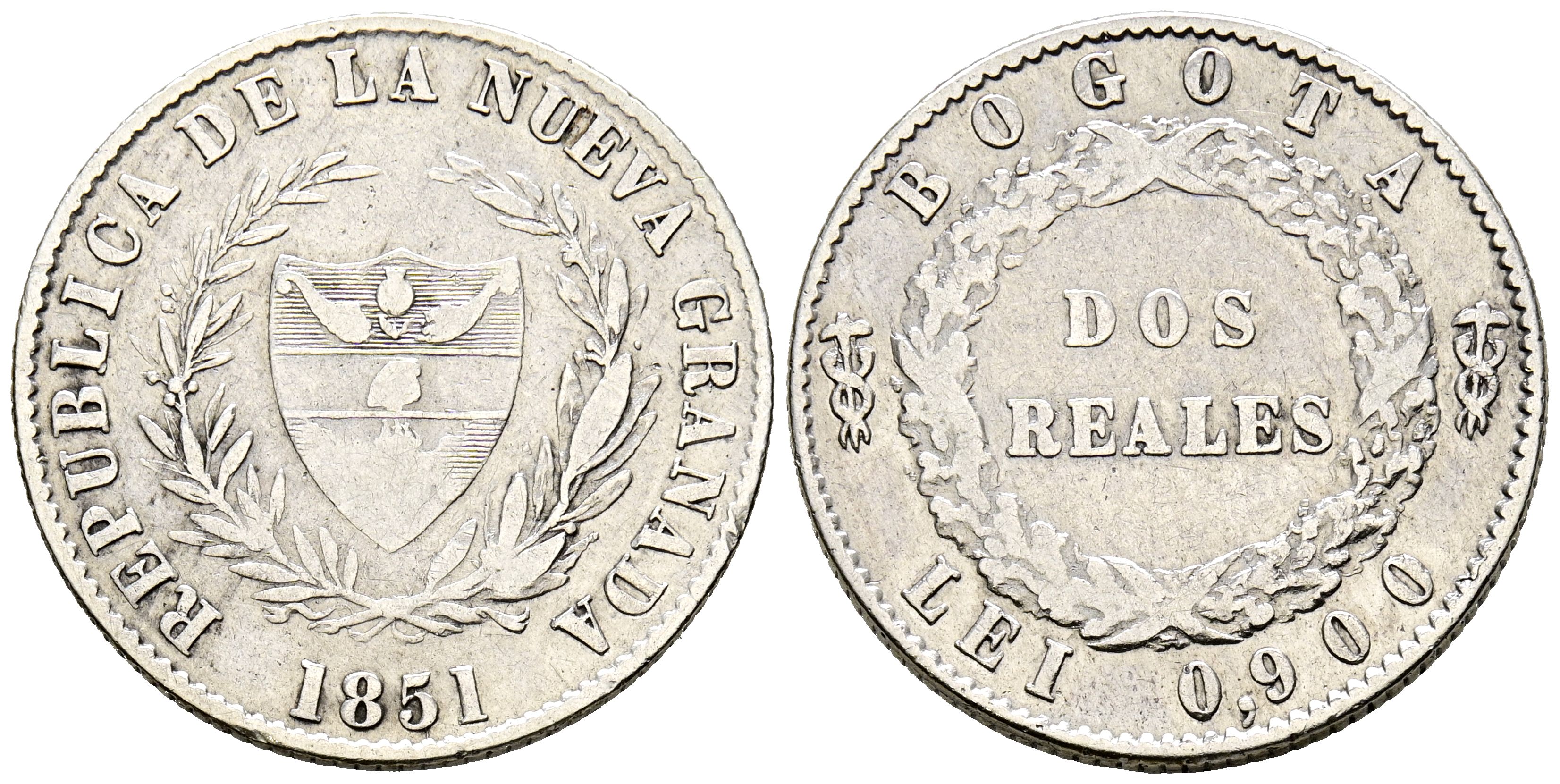 COLOMBIA. 2 Reales (Ar. 4,83g/23mm). 1851. Bogotá. República de la Nueva Granada. (Km#109). MBC. Escasa.