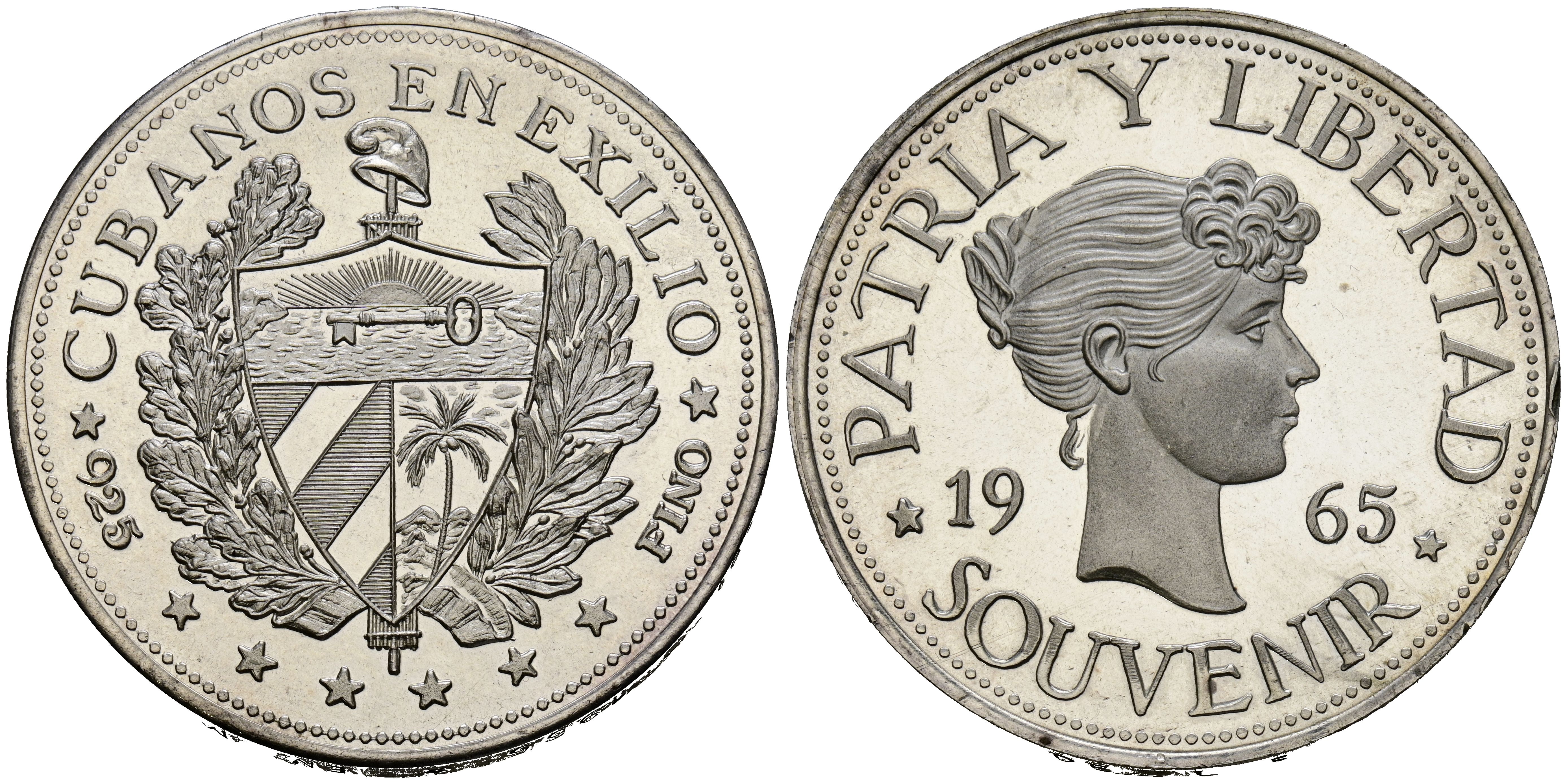 CUBA. 1 Peso Souvenir (Ar. 28,45g/39mm). 1965. Cubanos en exilio. (Km-XM6). Canto liso con inscripción: "En Memoria la Bahía de los Cochinos 1961-1965". PROOF.