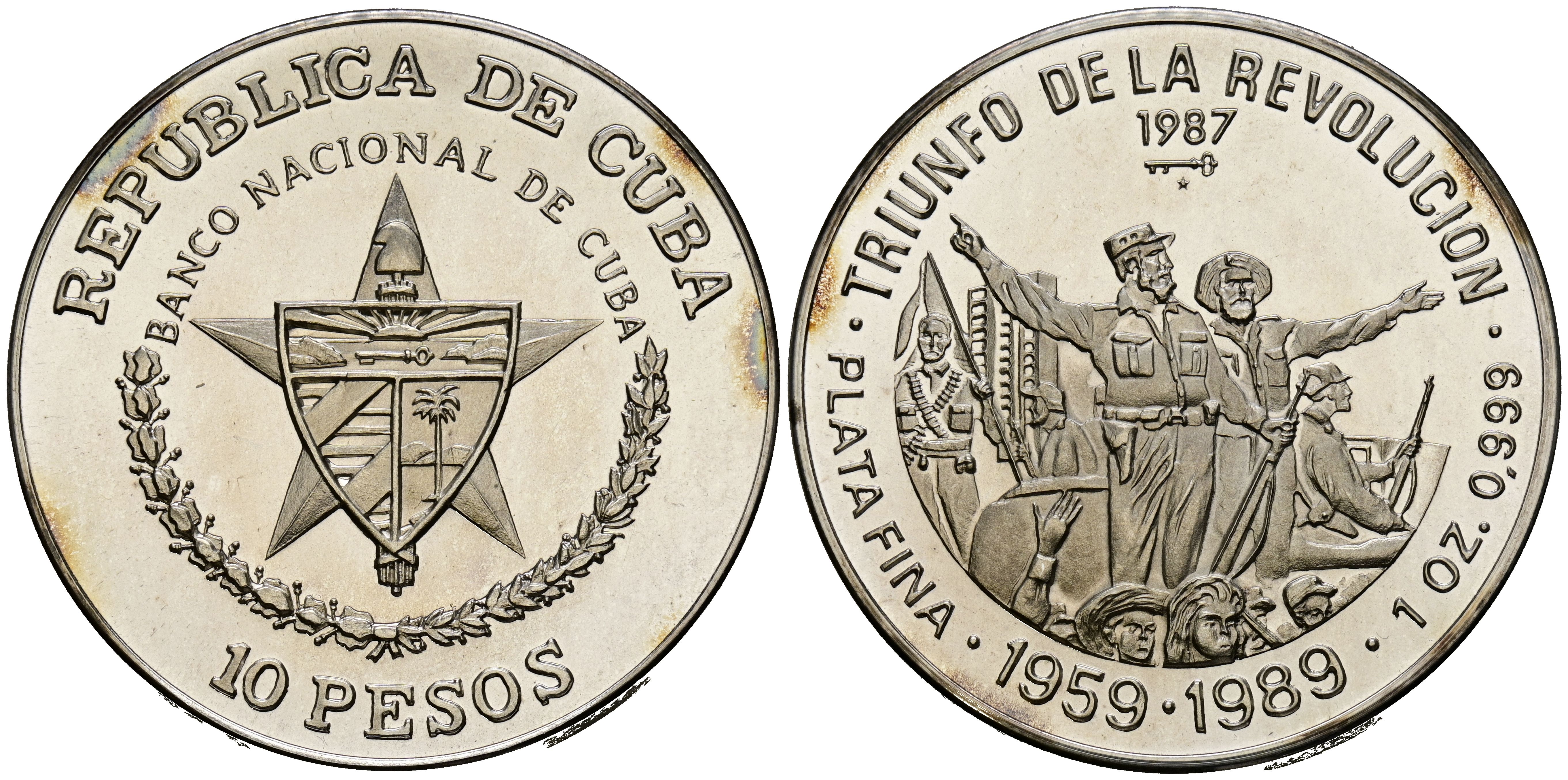 CUBA. 10 Pesos (Ar. 31,09g/38mm). 1987. 30 Aniversario del Triunfo de la Revolución. (Km#162). PROOF. Tirada de sólo 2000 ejemplares.