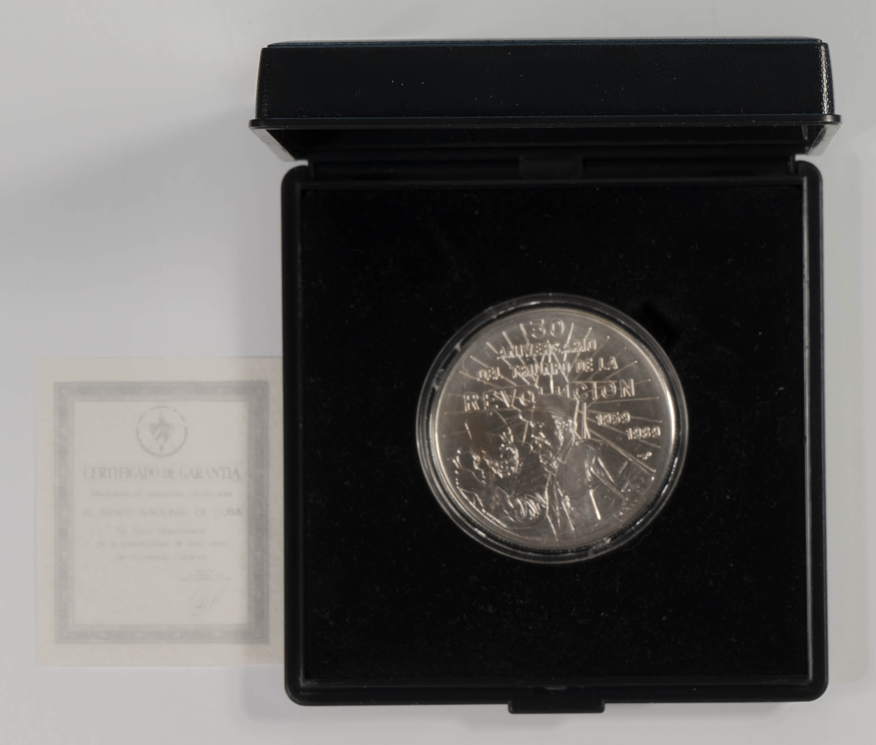 CUBA. 10 Pesos (Ar. 31,10g/38mm). 1989. 30 Aniversario de la Revolución. Camilo Cienfuegos y Fidel Castro. (Km#243). SC. Con estuche y certificado de autenticidad.
