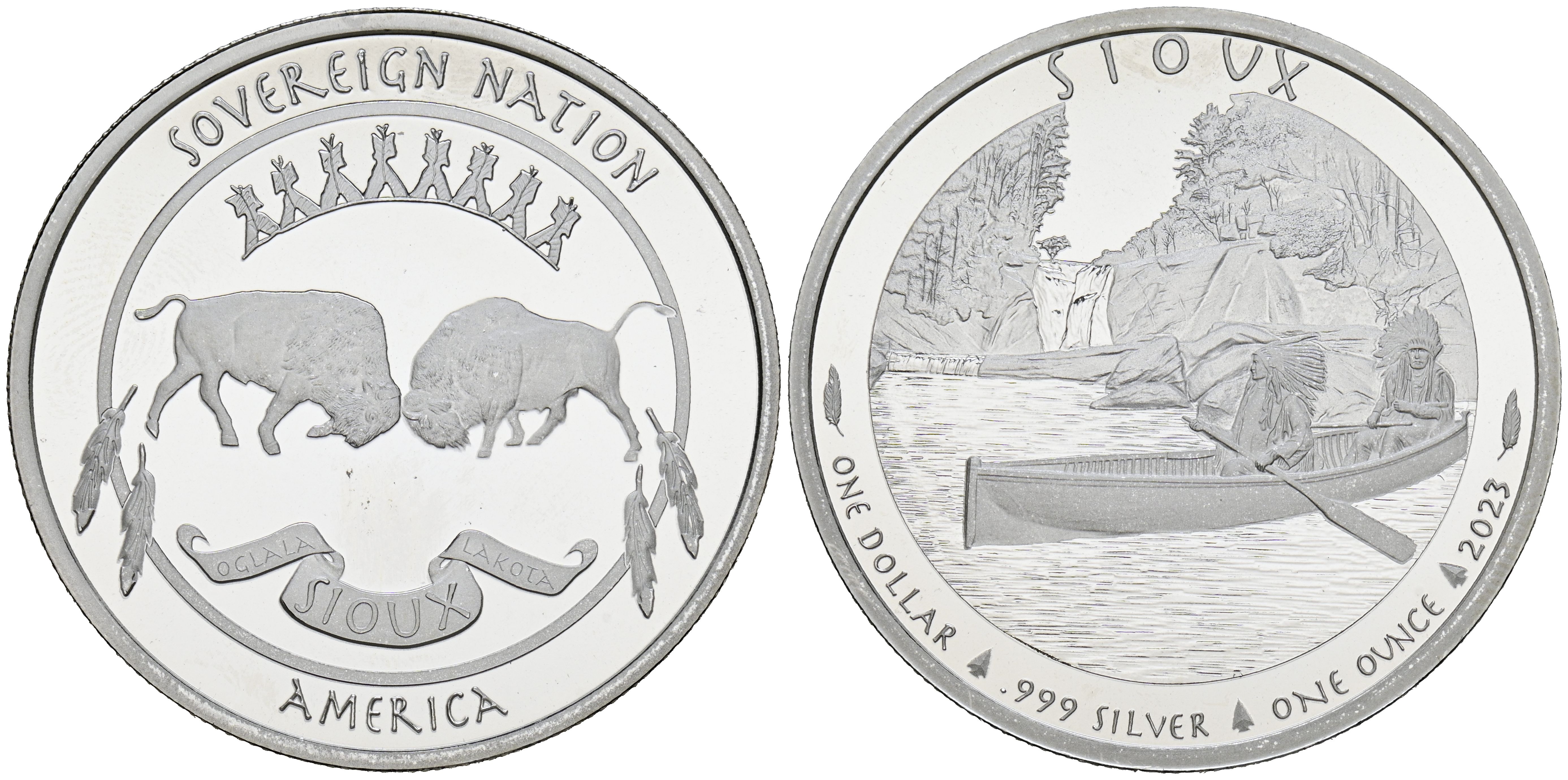 ESTADOS UNIDOS. Onza (Ar. 31,34g/39mm). 2023. Sioux. Acuñación privada. Plata de 0,999 milésimas. PROOF.
