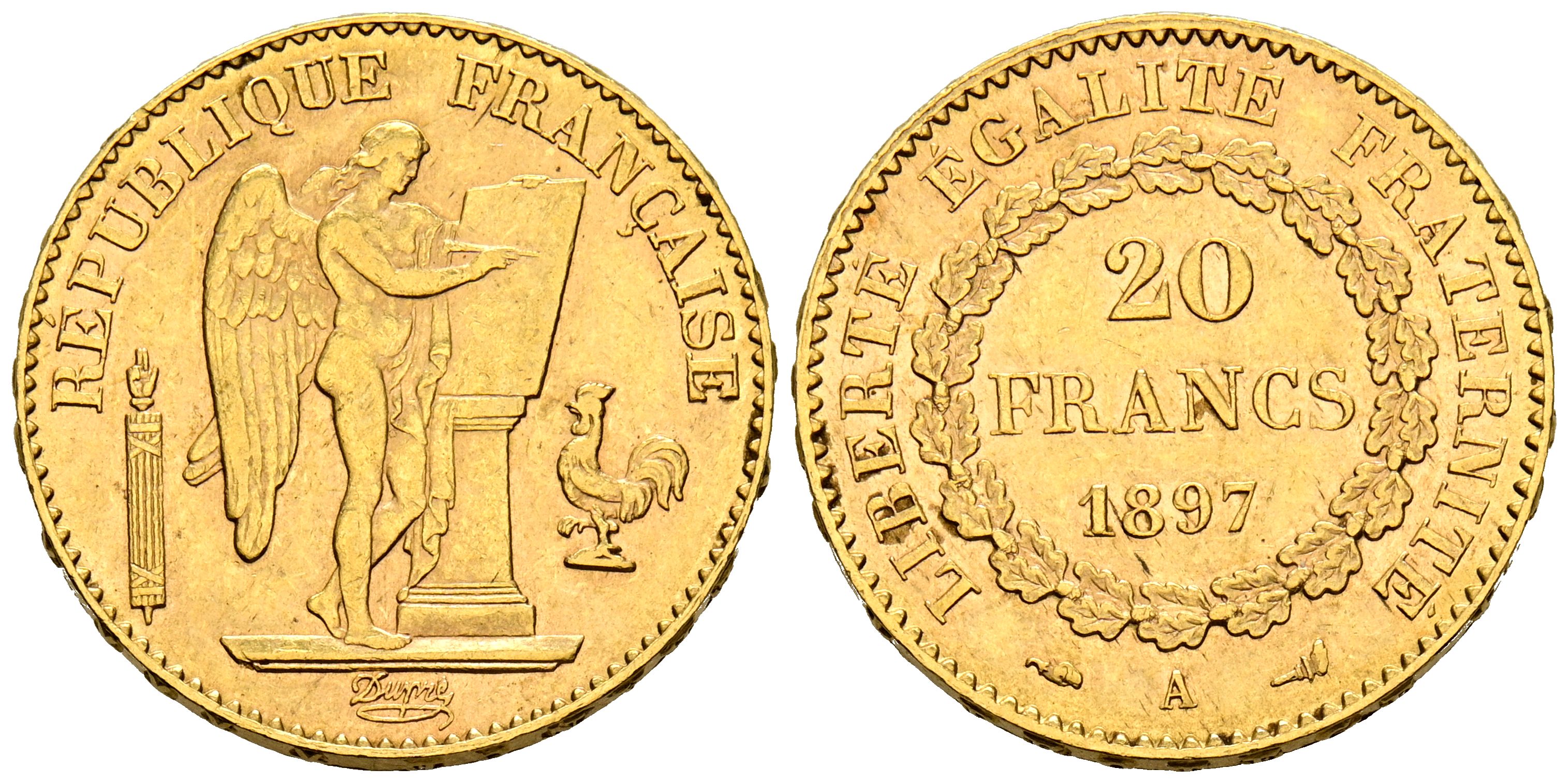 FRANCIA, III República. 20 Francos (Au. 6,44g/21mm). 1897. París A. (Km#825). MBC.