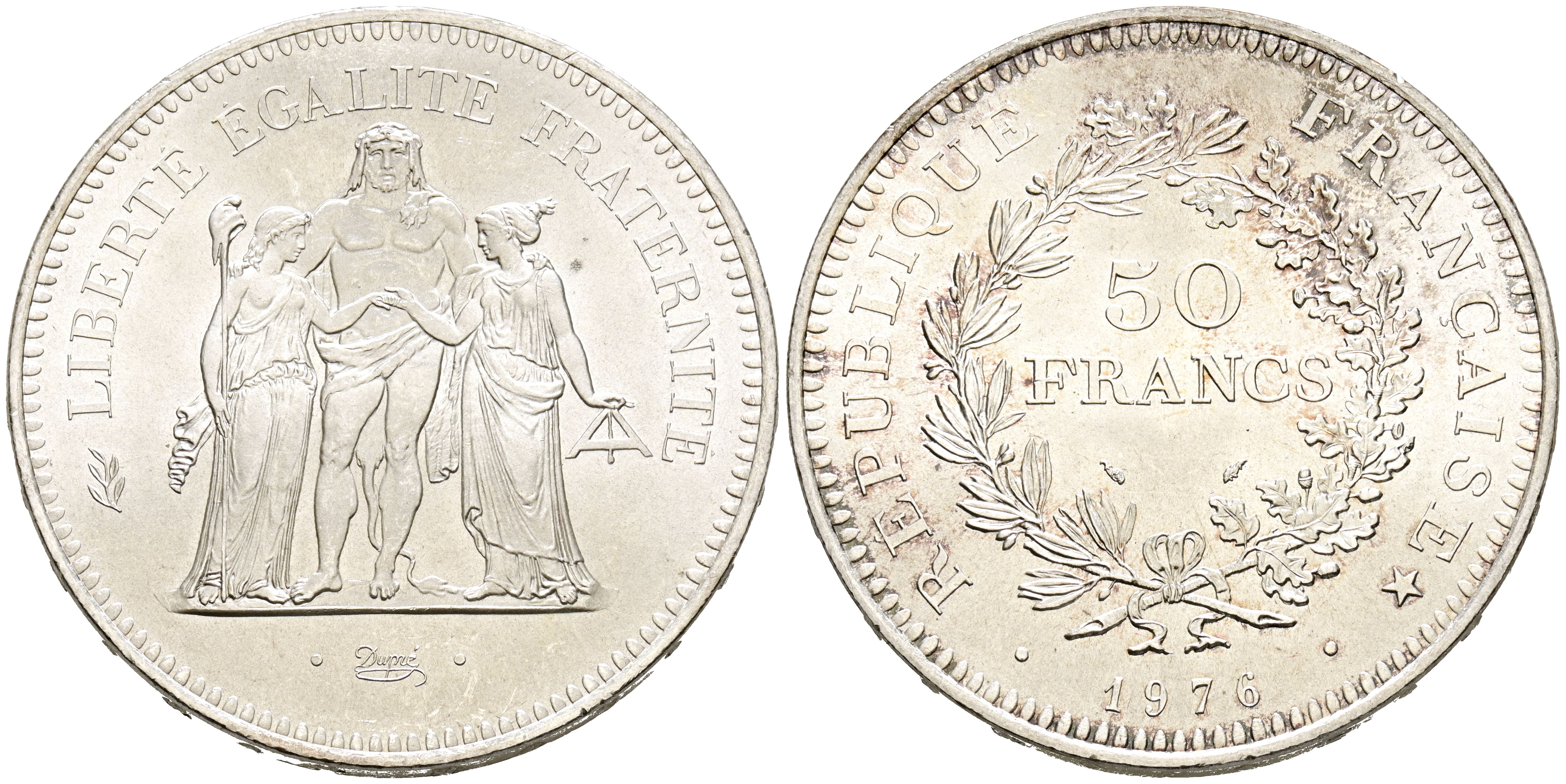FRANCIA. 50 Francs. (Ar. 30,07g/41mm). 1976. Hércules. (Km#941). SC.