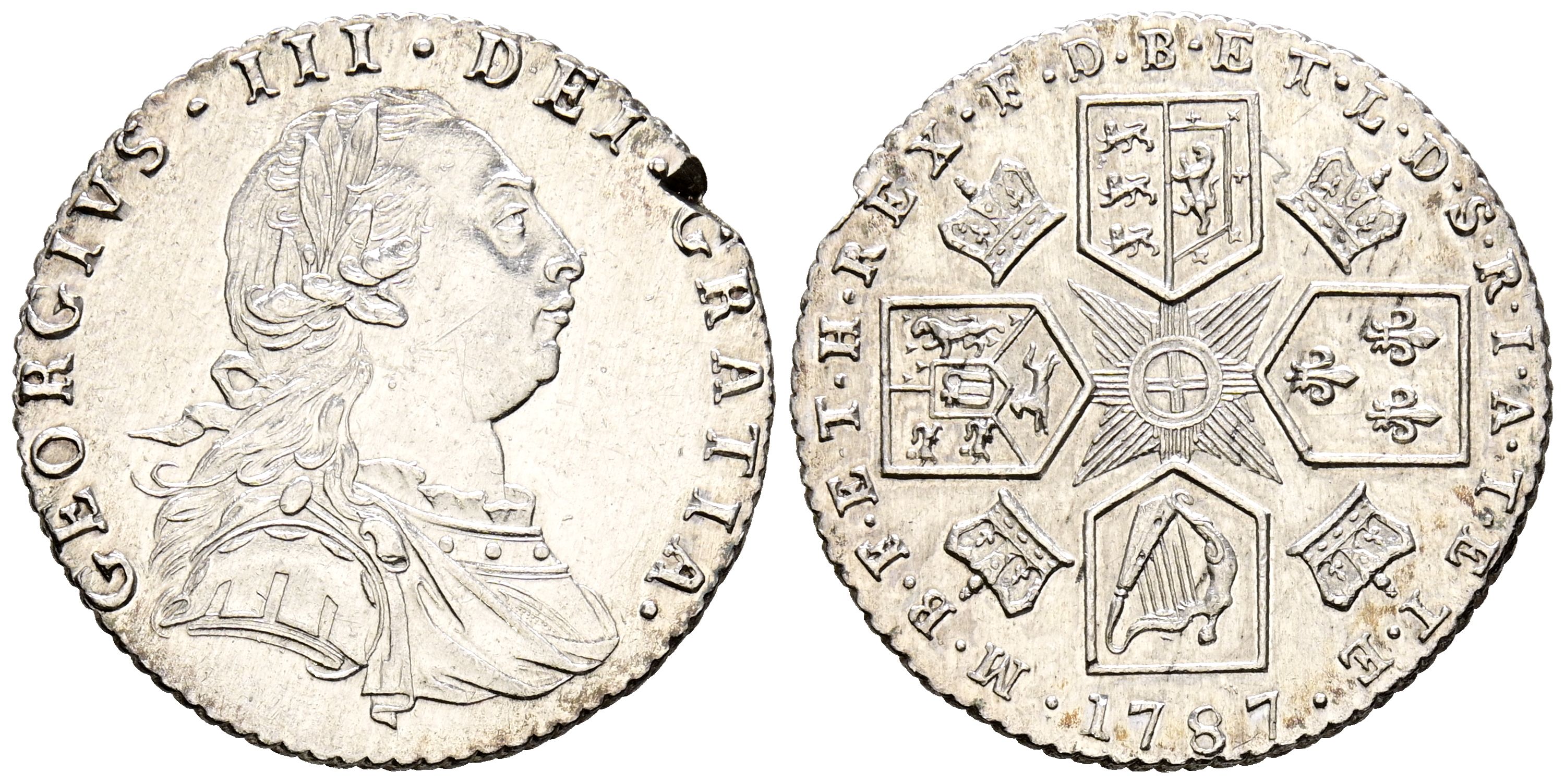 GRAN BRETAÑA. 6 Pence (Ar. 3,01g/21mm). 1787. Jorge III. (Km#606). EBC. Limpiada. Pequeña muesca en canto.