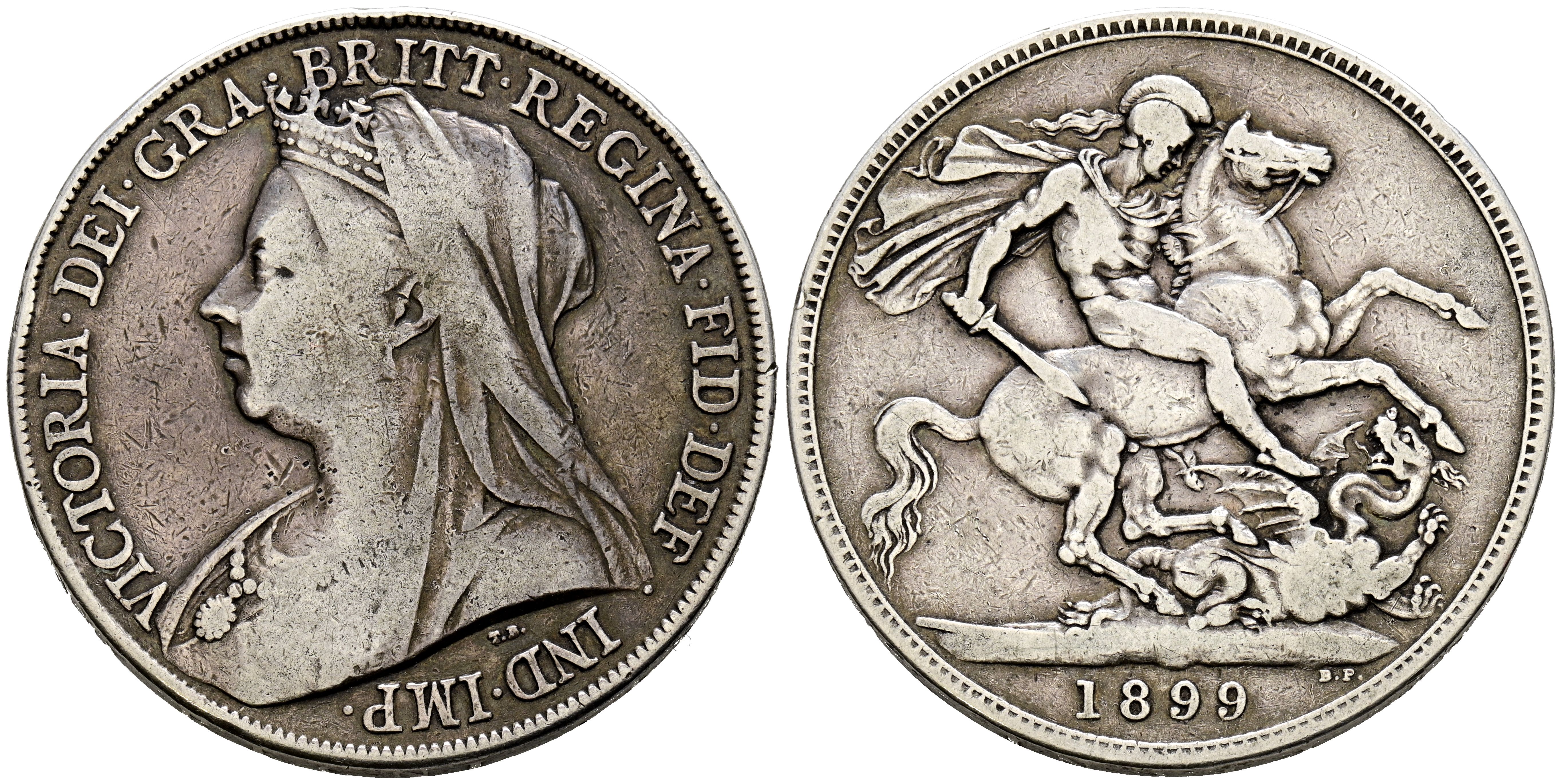 GRAN BRETAÑA, Reina Victoria. 1 Crown. (Ar. 27,83g/38mm). 1899 (LXII años de reinado). (Km#783). MBC-.