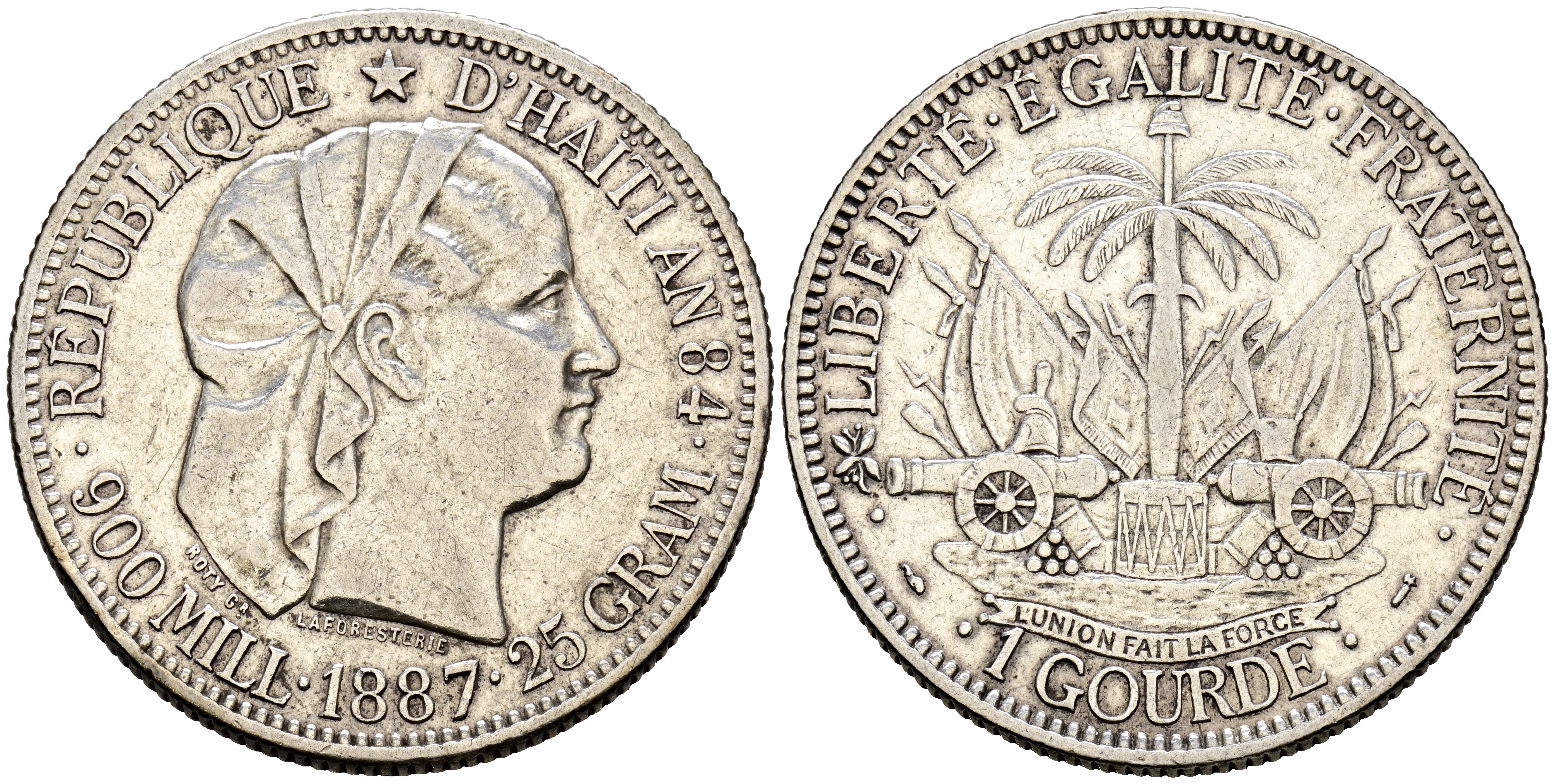 HAITÍ. 1 Gourde (Ar. 24,91g/37mm). 1887 (AN 84). París. (Km#46). MBC.