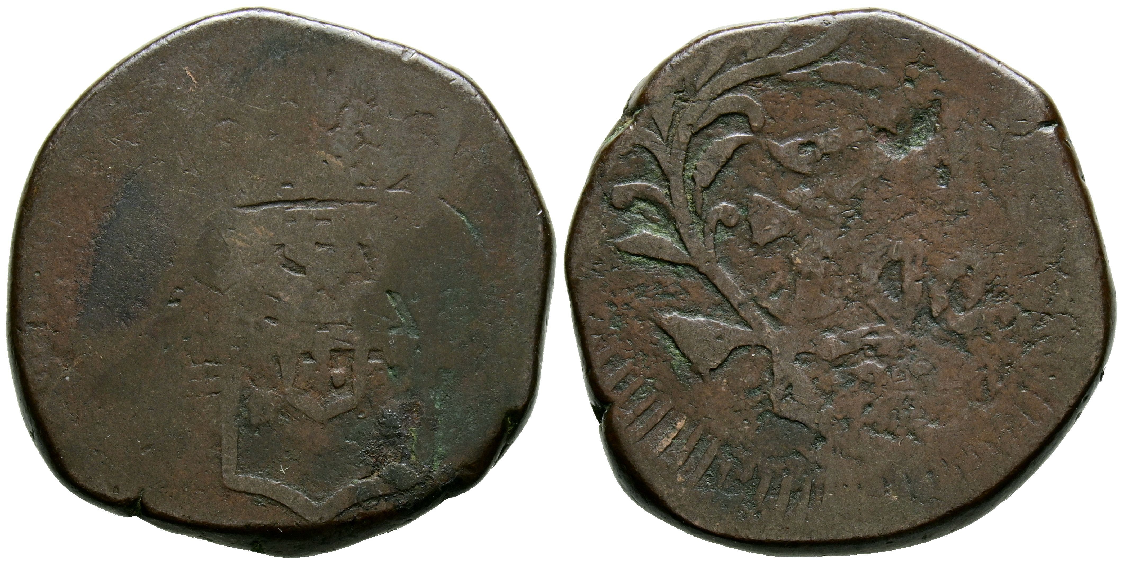 INDIA PORTUGUESA. D. Miguel I (1828 -1834). 1/2 Tanga. (30 Réis). (Ae. 19,15g/30mm). Goa. (Gomes-01.05). Sobre 1/2 Tanga de João V. BC.