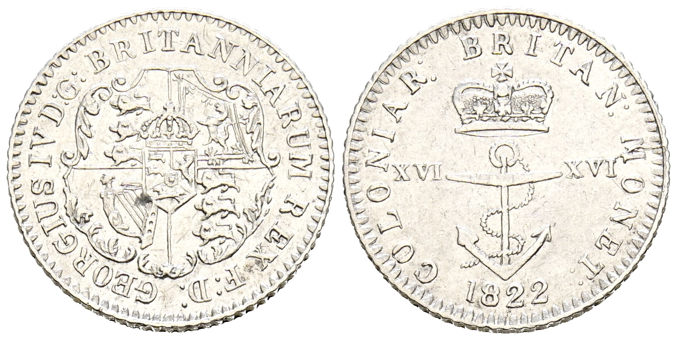INDIA OCCIDENTAL BRITÁNICA. 1/16 Dollar (Ar. 1,71g/16mm). 1822. Jorge IV. (Km#1). EBC-.