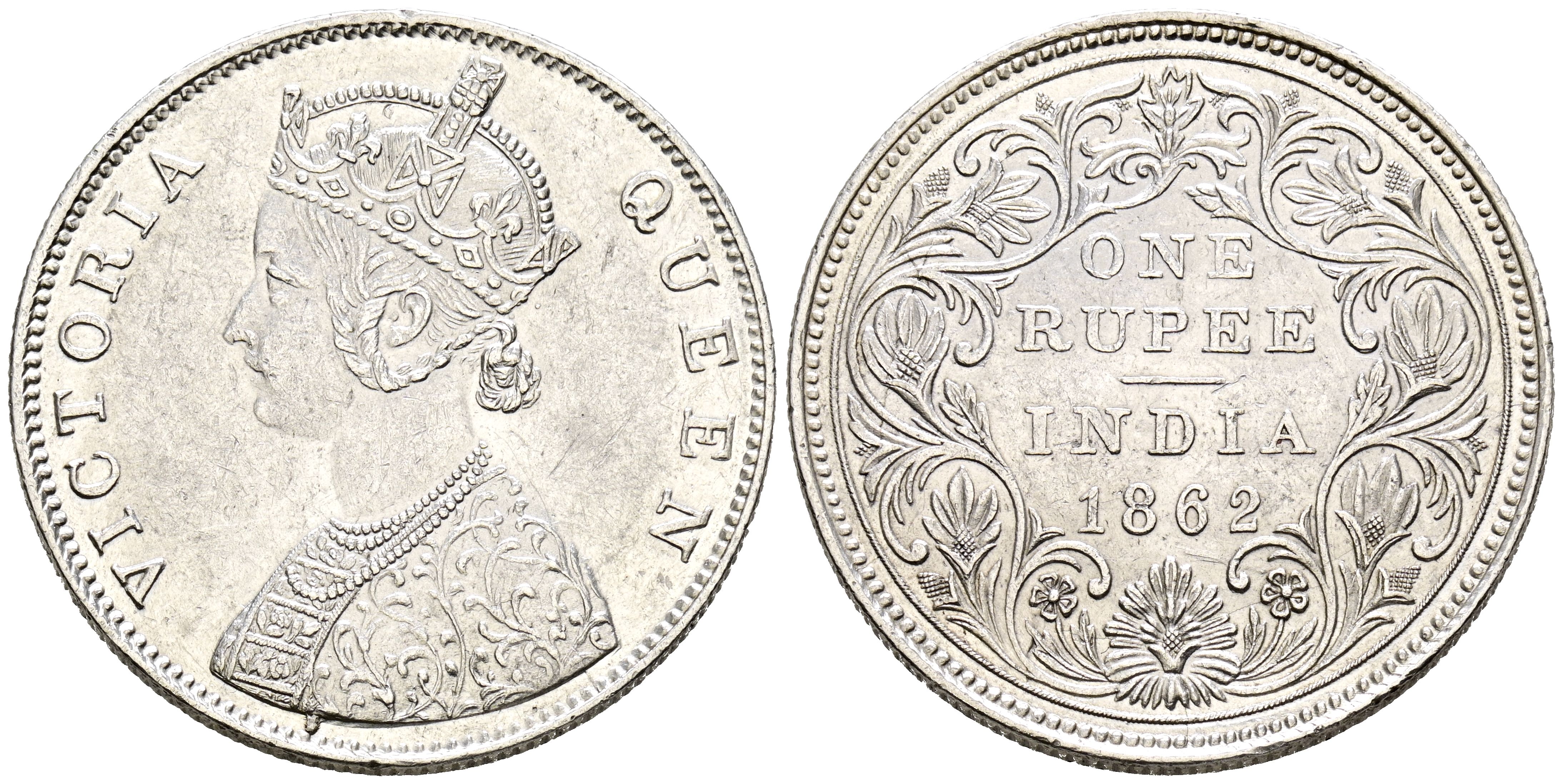 INDIA (Británica). 1 Rupia (Ar. 11,69g/31mm). 1862. Reina Victoria. (Km#473.1). MBC+.
