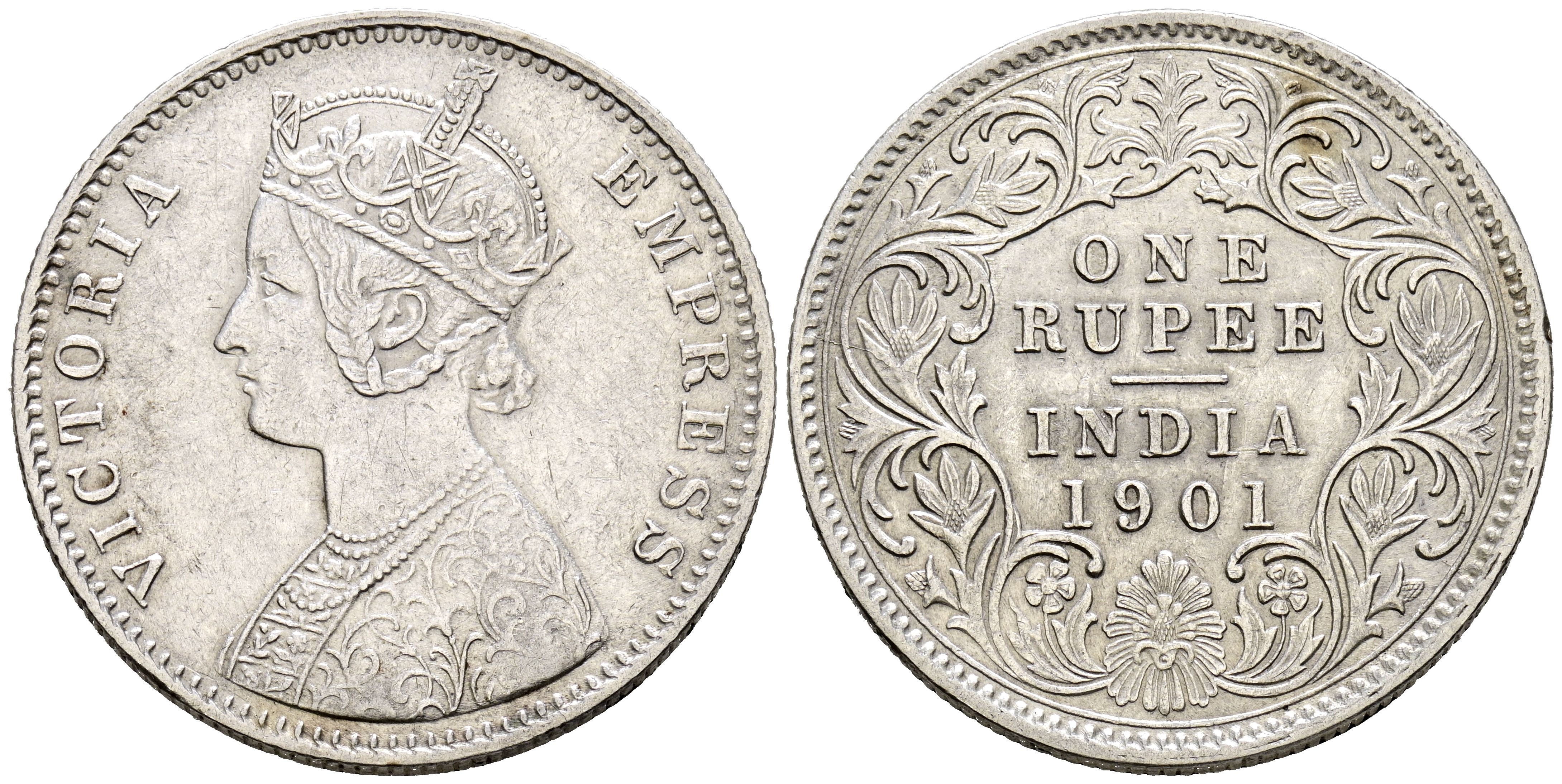 INDIA (Británica). 1 Rupia (Ar. 11,63g/31mm). 1901. Reina Victoria. (Km#492). MBC+.