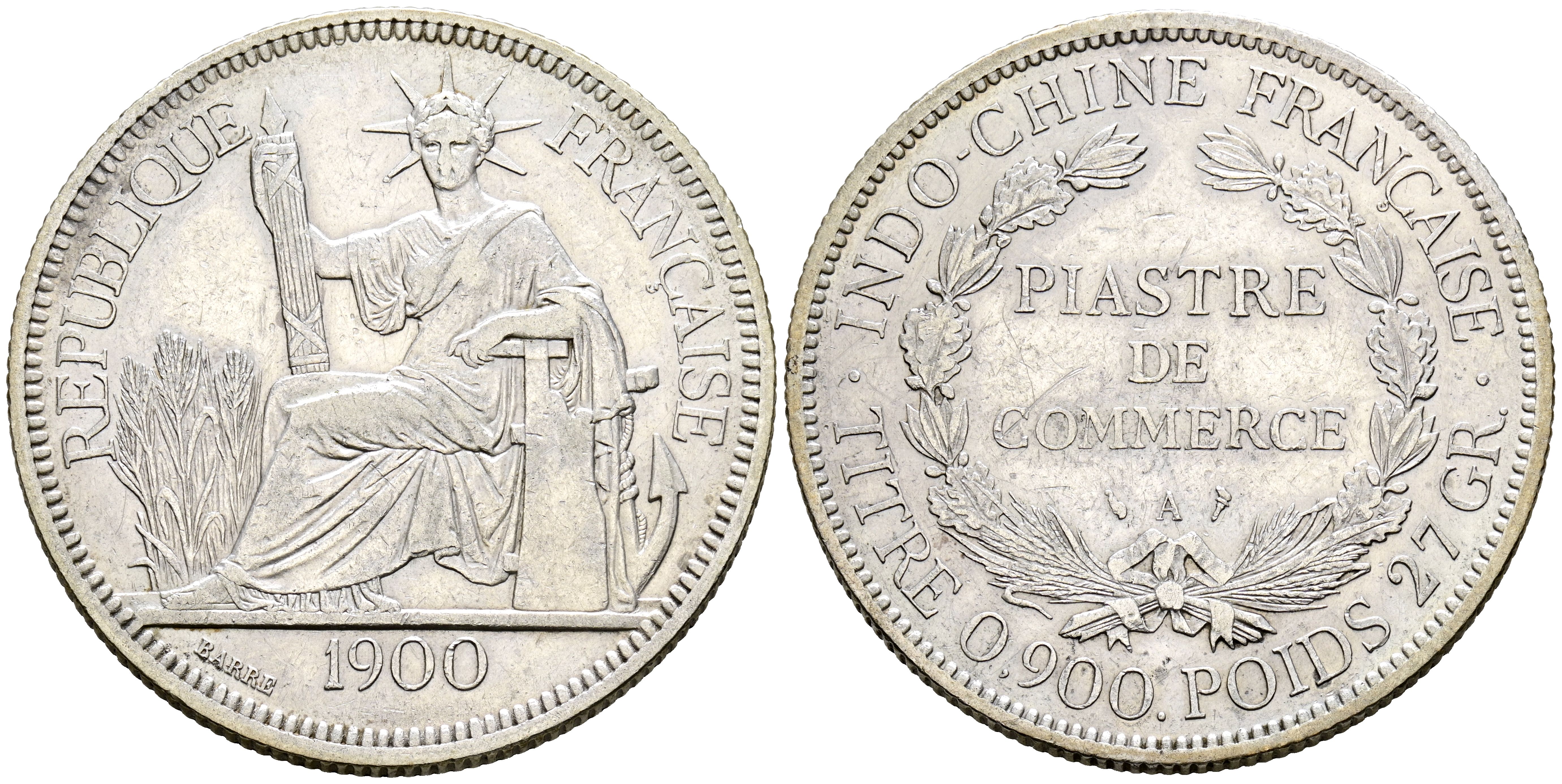 INDOCHINA (Francesa). Piastra de comercio (Ar. 26,94g/39mm). 1900. París A. (Km#5a1). MBC.