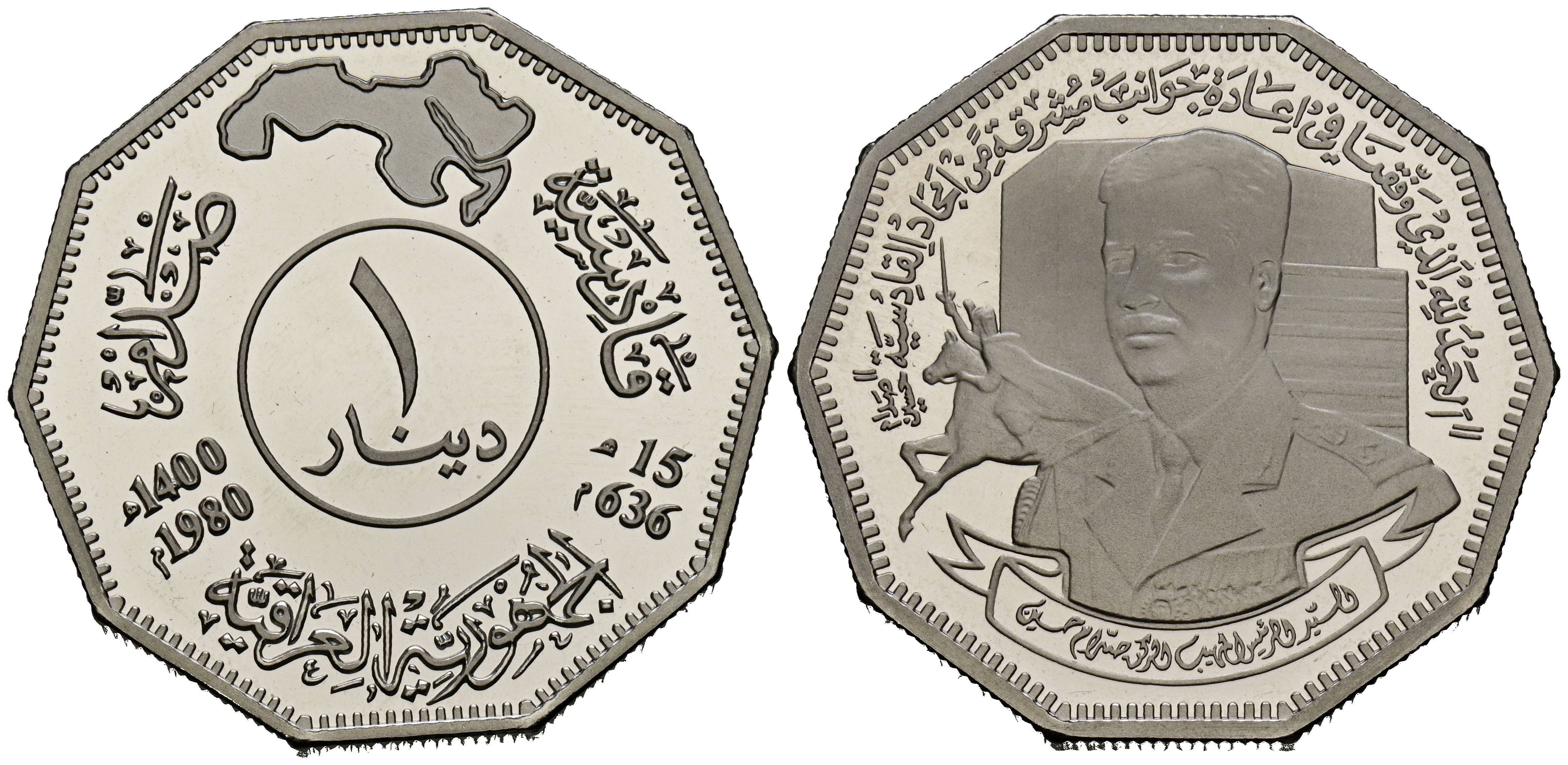 IRAK. 1 Dinar (Ar. 12,89g/33mm). 1980. Batalla de al-Qadisiyya. (Km#149). PROOF.