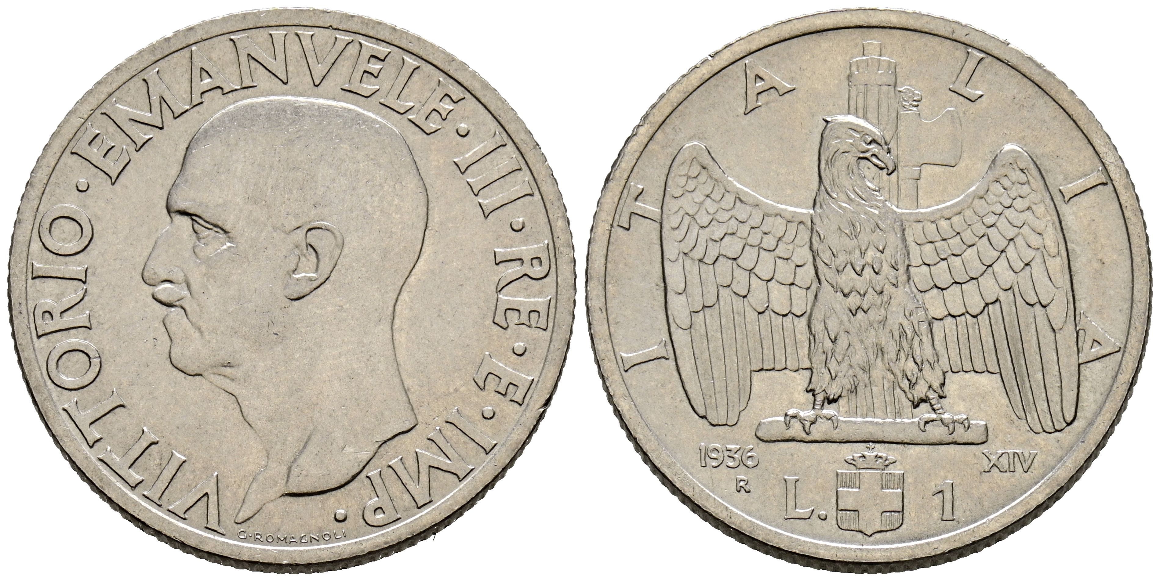 ITALIA. 1 Lira (Ni. 7,86g/27mm). 1936. Victor Manuel III. Roma R. (Km#77). MBC+.