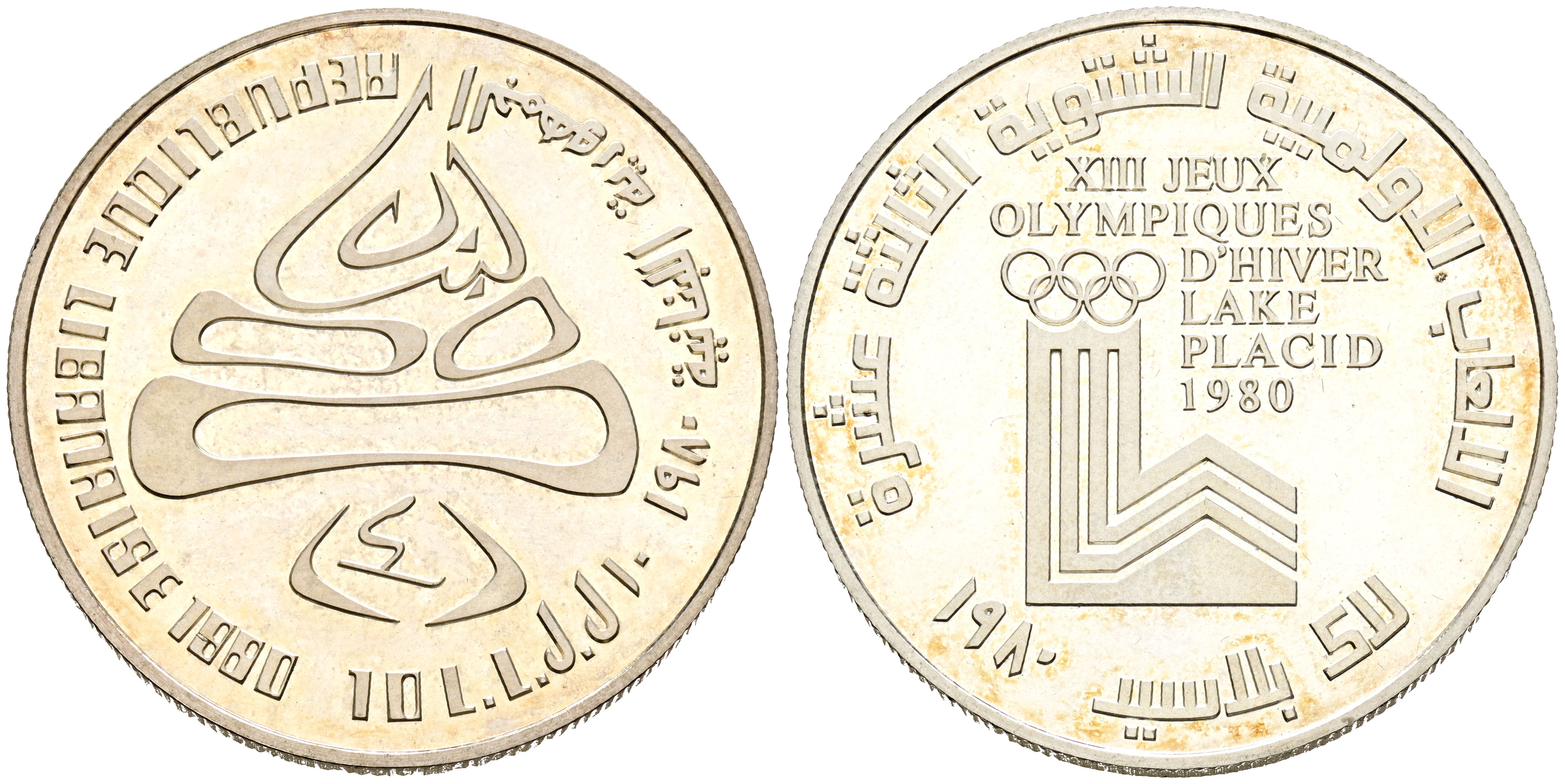 LÍBANO. 10 Libras. (Ar. 18,92g/33mm). 1980. Juegos Olímpicos de Invierno. (Km#33). PROOF. Escasa.