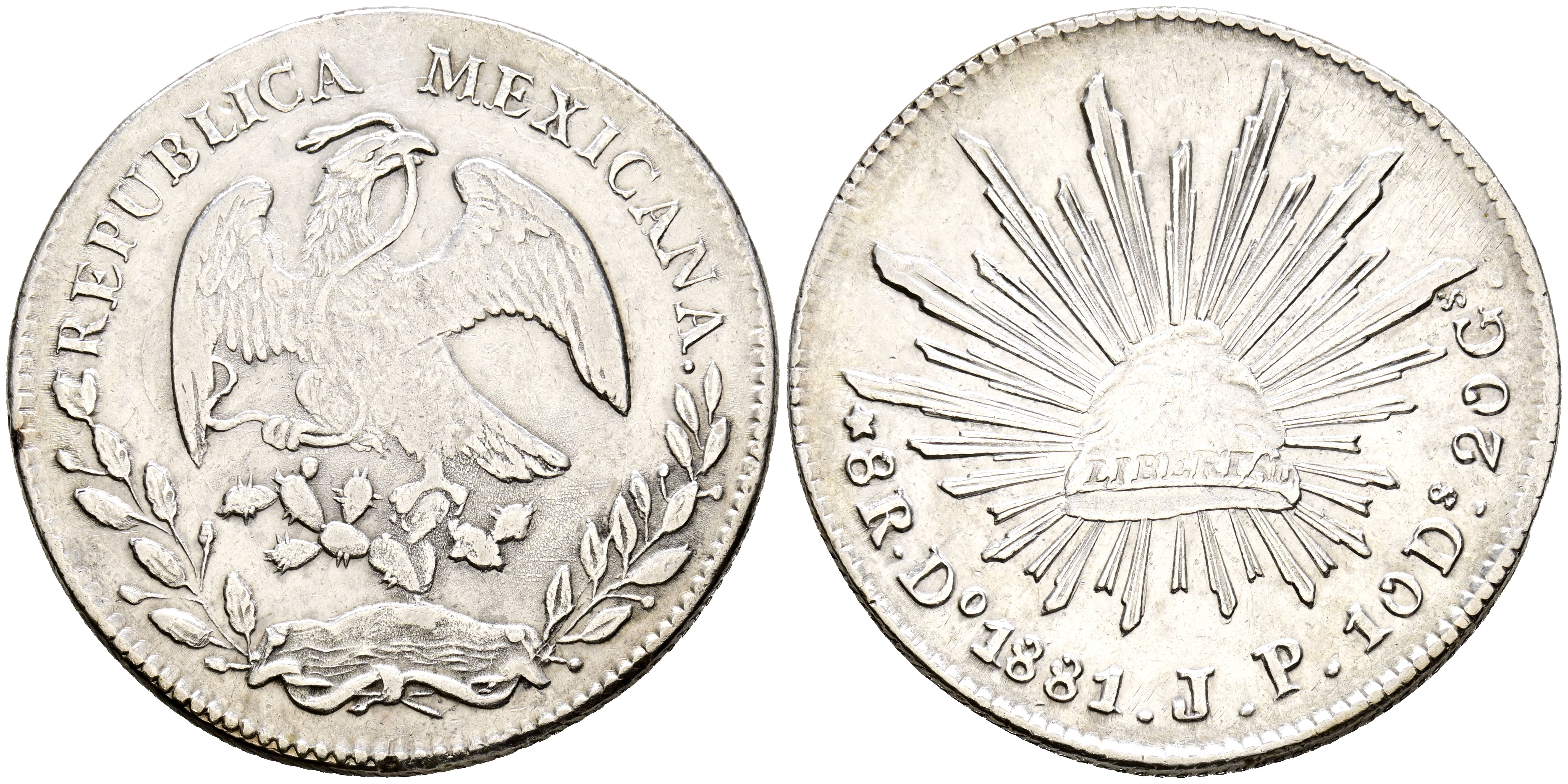 MÉXICO. 8 Reales. (Ar. 26,81g/39mm). 1881. Durango JP. (Km#377.4). MBC.