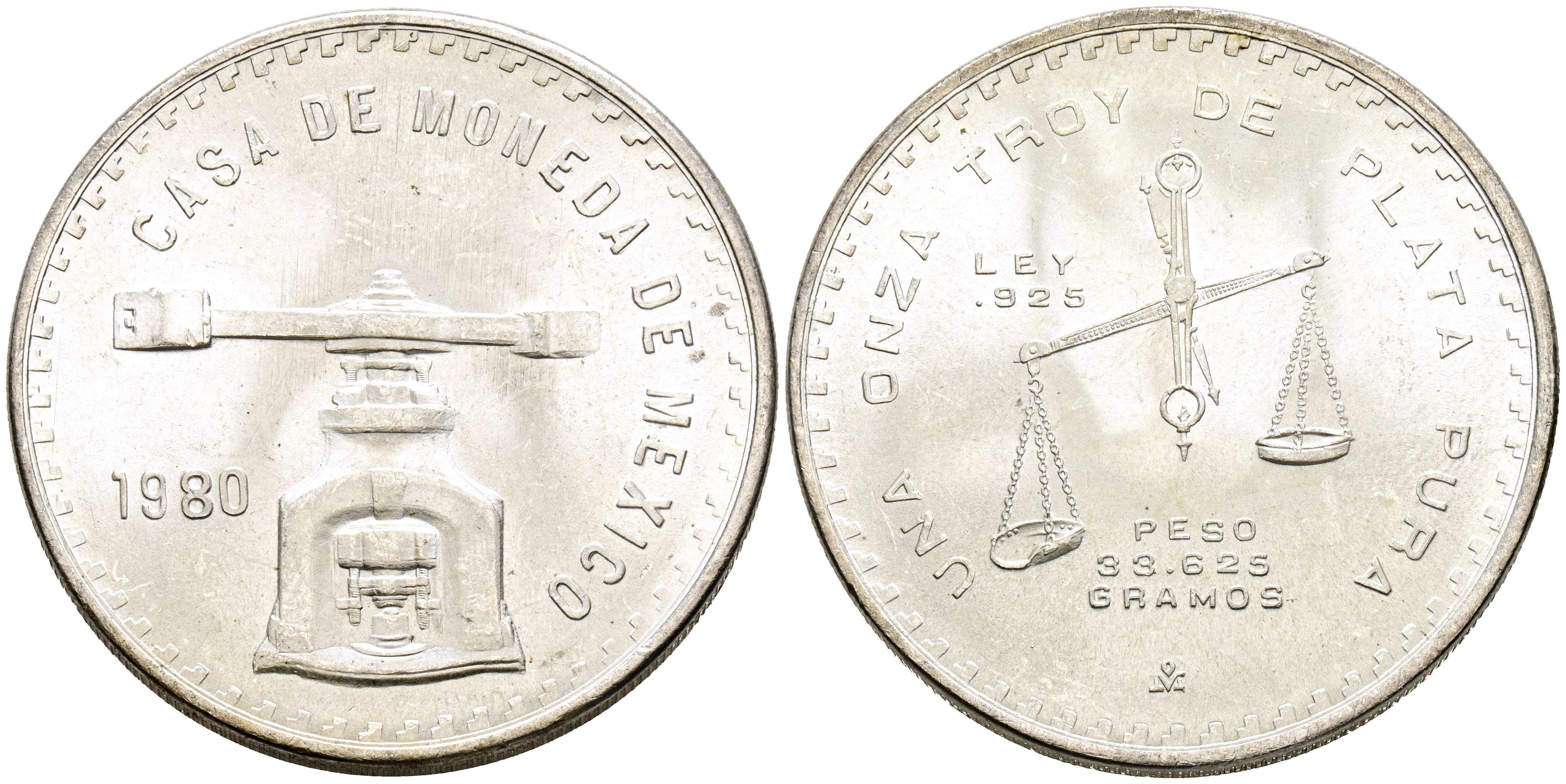 MÉXICO. 1 Onza Troy de Plata. (Ar. 33,44g/42mm). 1980. (Km#M49b.5). SC-