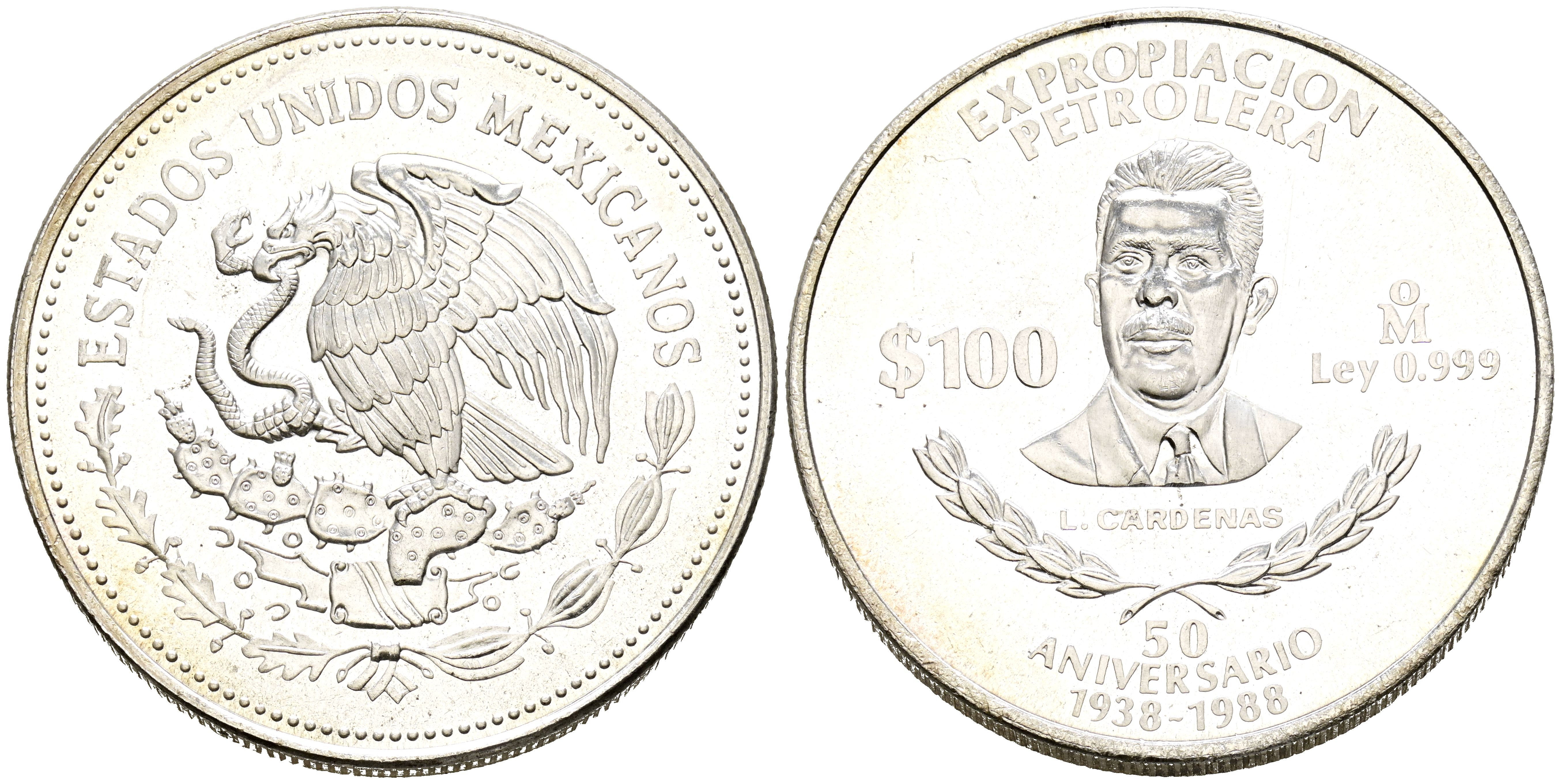 MÉXICO. 100 Pesos. (Ar. 31,22g/38mm). 1988. 50 Aniversario de la Expropiación Petrolera. (Km#533). EBC+.