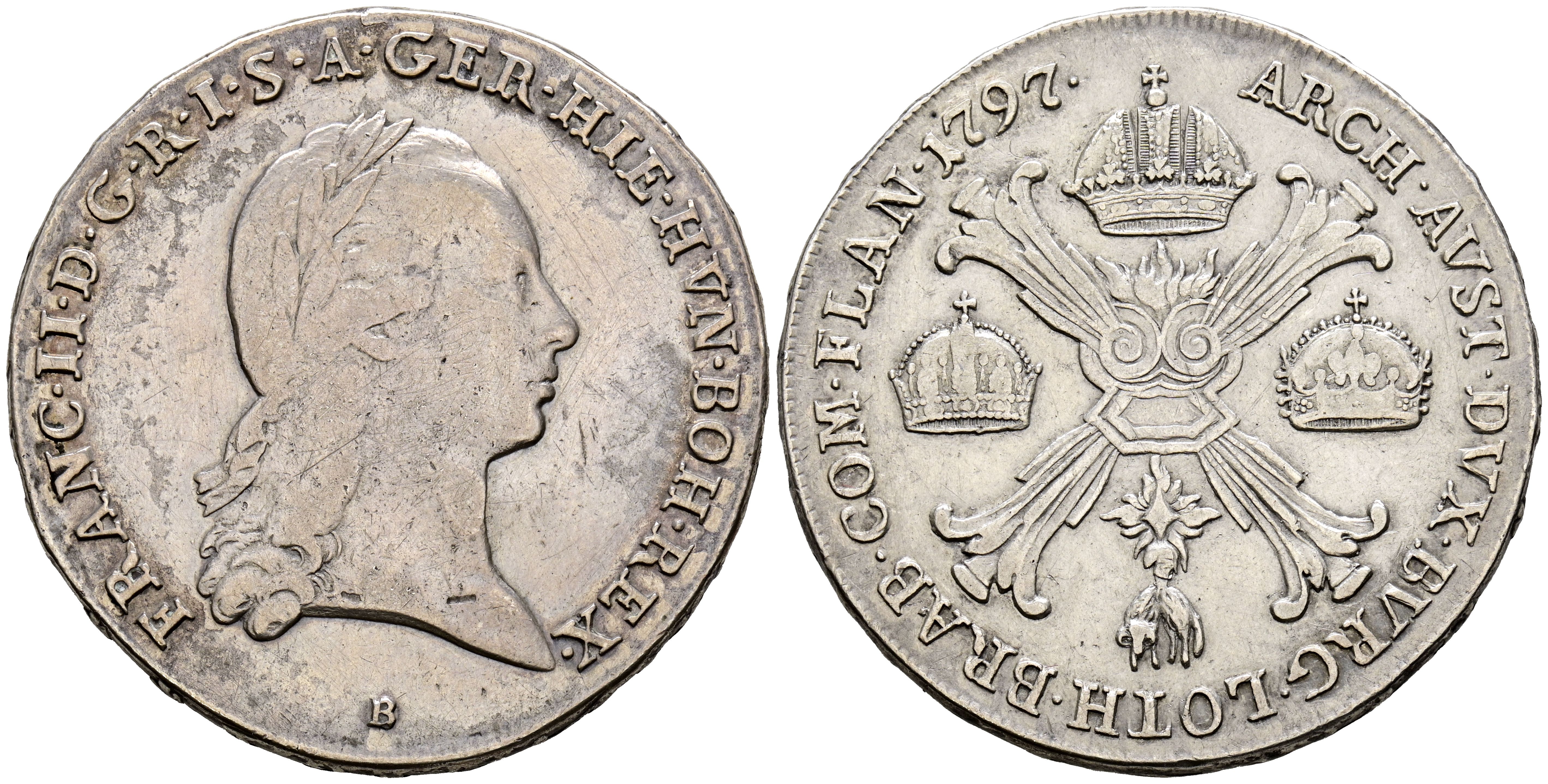 PAÍSES BAJOS (Austriacos). 1 Kronenthaler (Ar. 29,10g/40mm). 1797. Francisco II. Kremnica B. (Km#62.2). MBC.