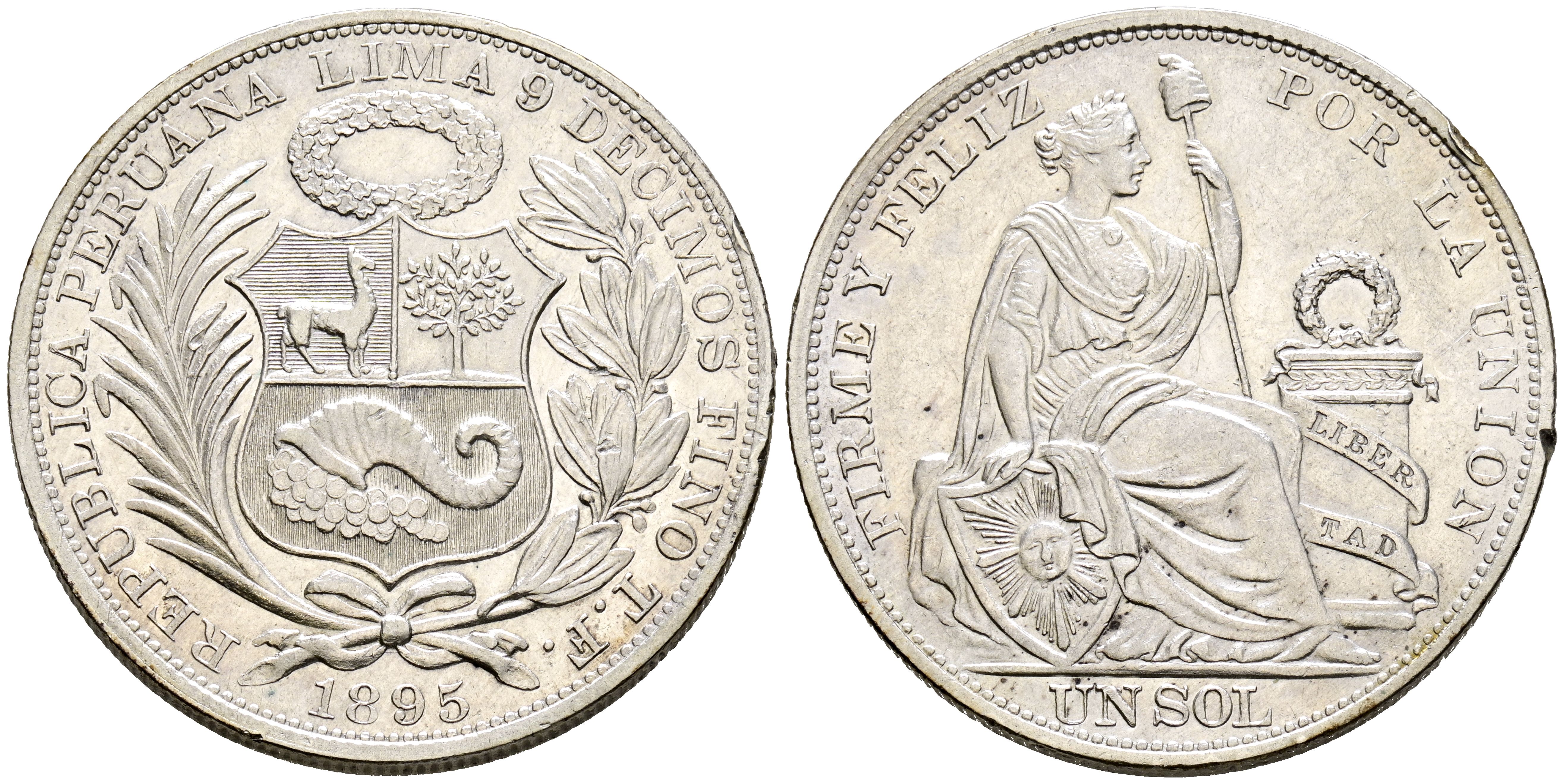 PERÚ. 1 Sol. (Ar. 24,93g/37mm). 1895. Lima TF. (Km#196.26). EBC.