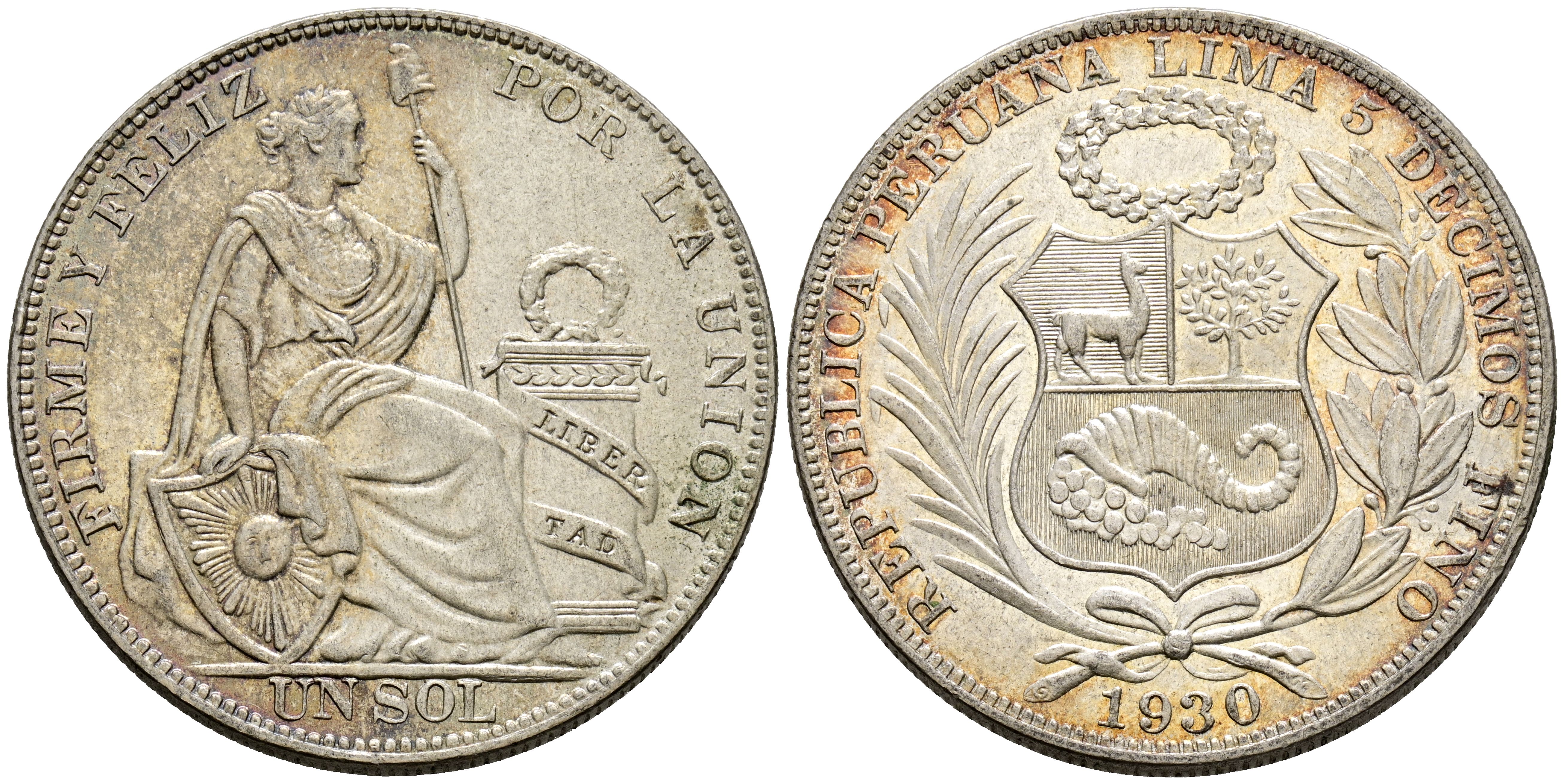 PERÚ. 1 Sol. (Ar. 24,47g/38mm). 1930. Lima. (Km#203). EBC/EBC+. Precioso reverso.