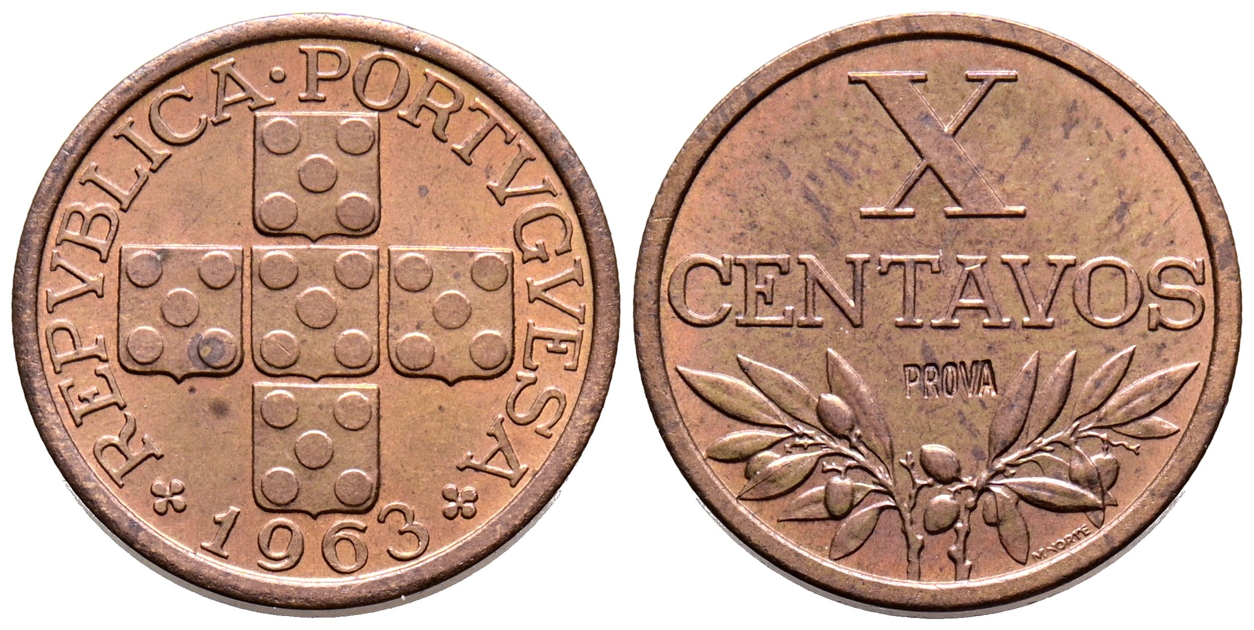 PORTUGAL. X Centavos. (Ae. 2,01g/18mm). 1963. "PROVA". (Gomes E4.17). SC-. Preciosa pátina.