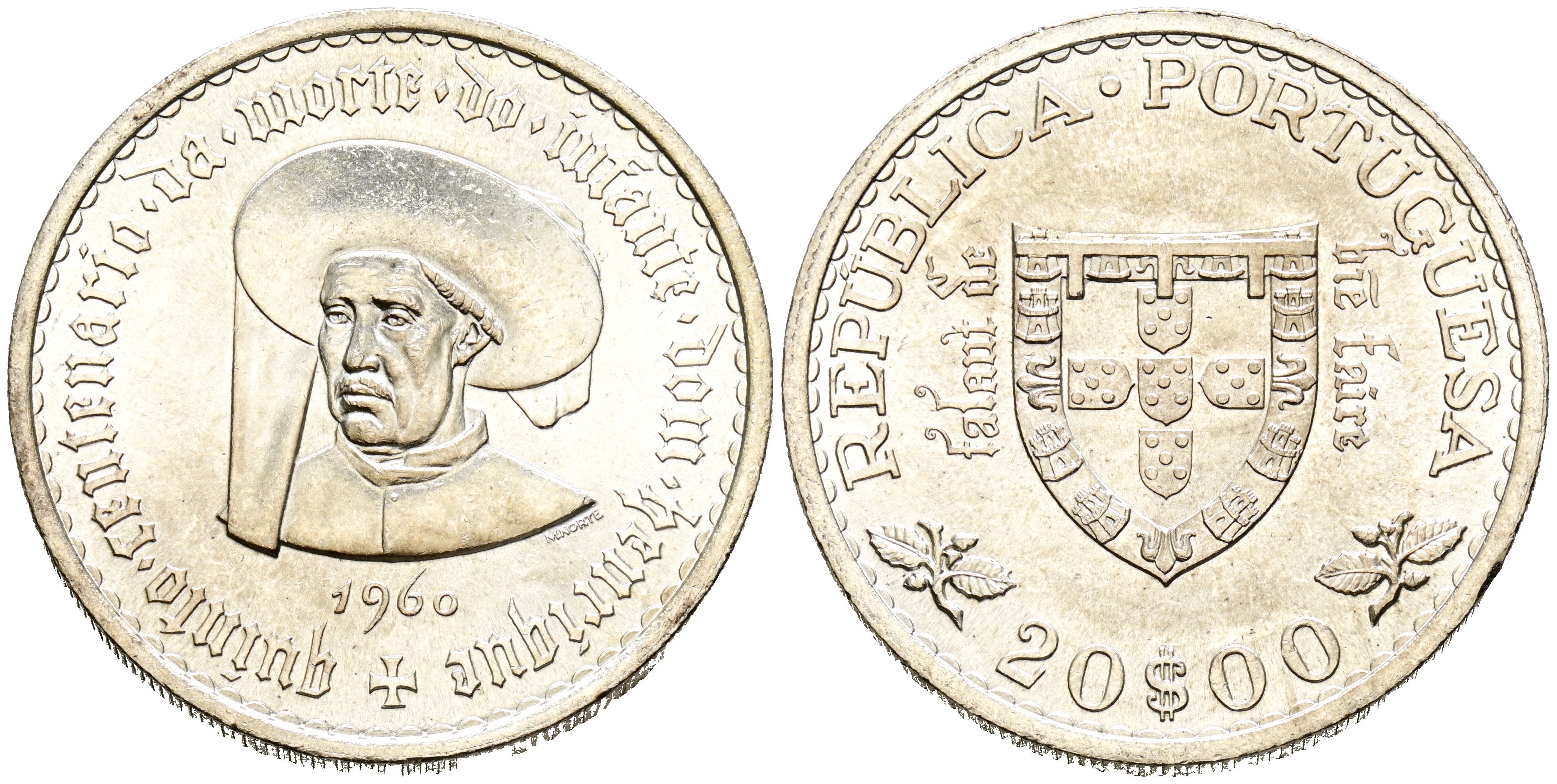 PORTUGAL. 20 Escudos (Ar. 21,04g/34mm). 1960. V Centenario de la muerte del Infante D. Henrique. (Cal-2019-589). SC-.