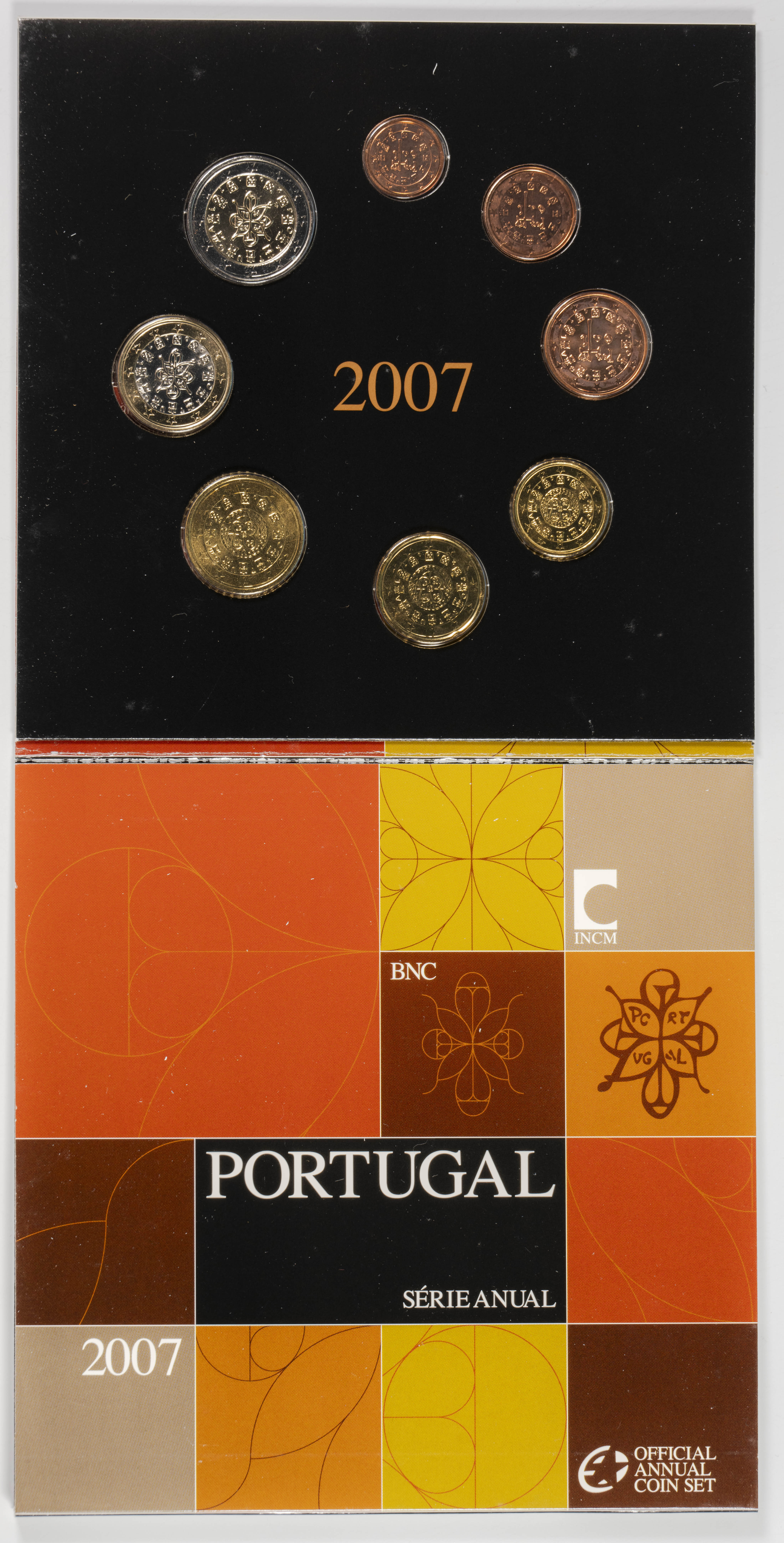 PORTUGAL. Set de la serie anual de Euros del BNC. 2007. 8 valores en calidad BU (Brillant Uncirculated). Muy escasa. Tirada de 12.000 ejemplares.
