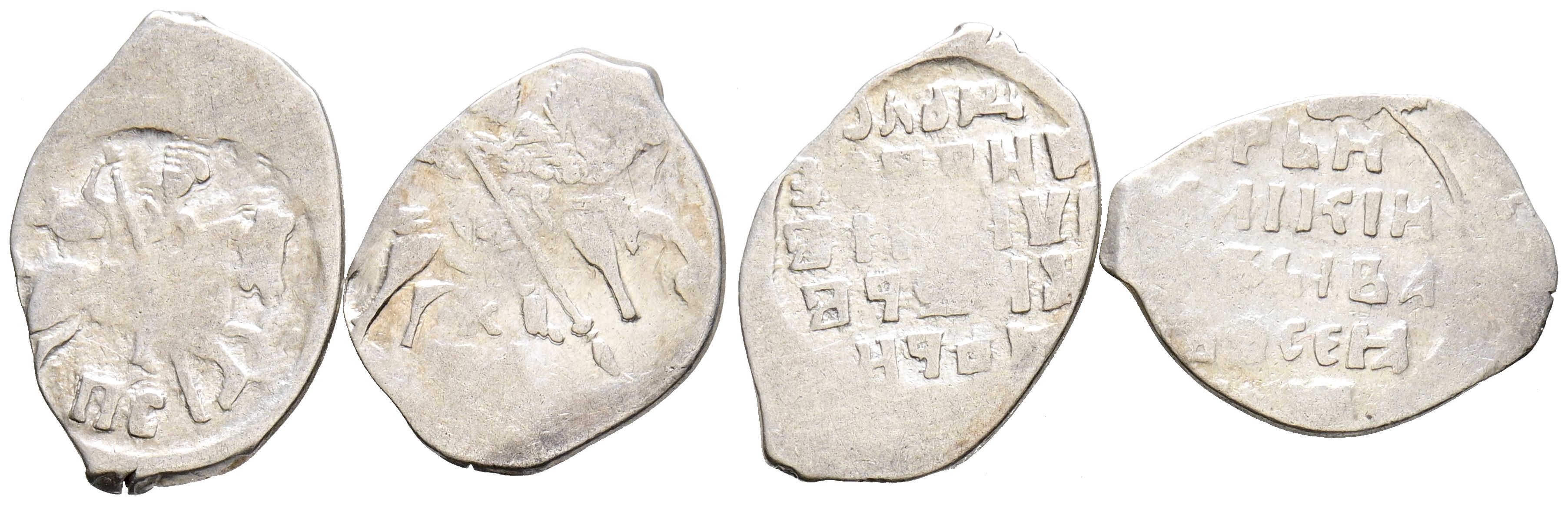 RUSIA. Pareja de Kopeks en plata acuñadas en el reinado de Ivan IV Vasilievich (1533-1584). Diferentes estados de conservación. A EXAMINAR.