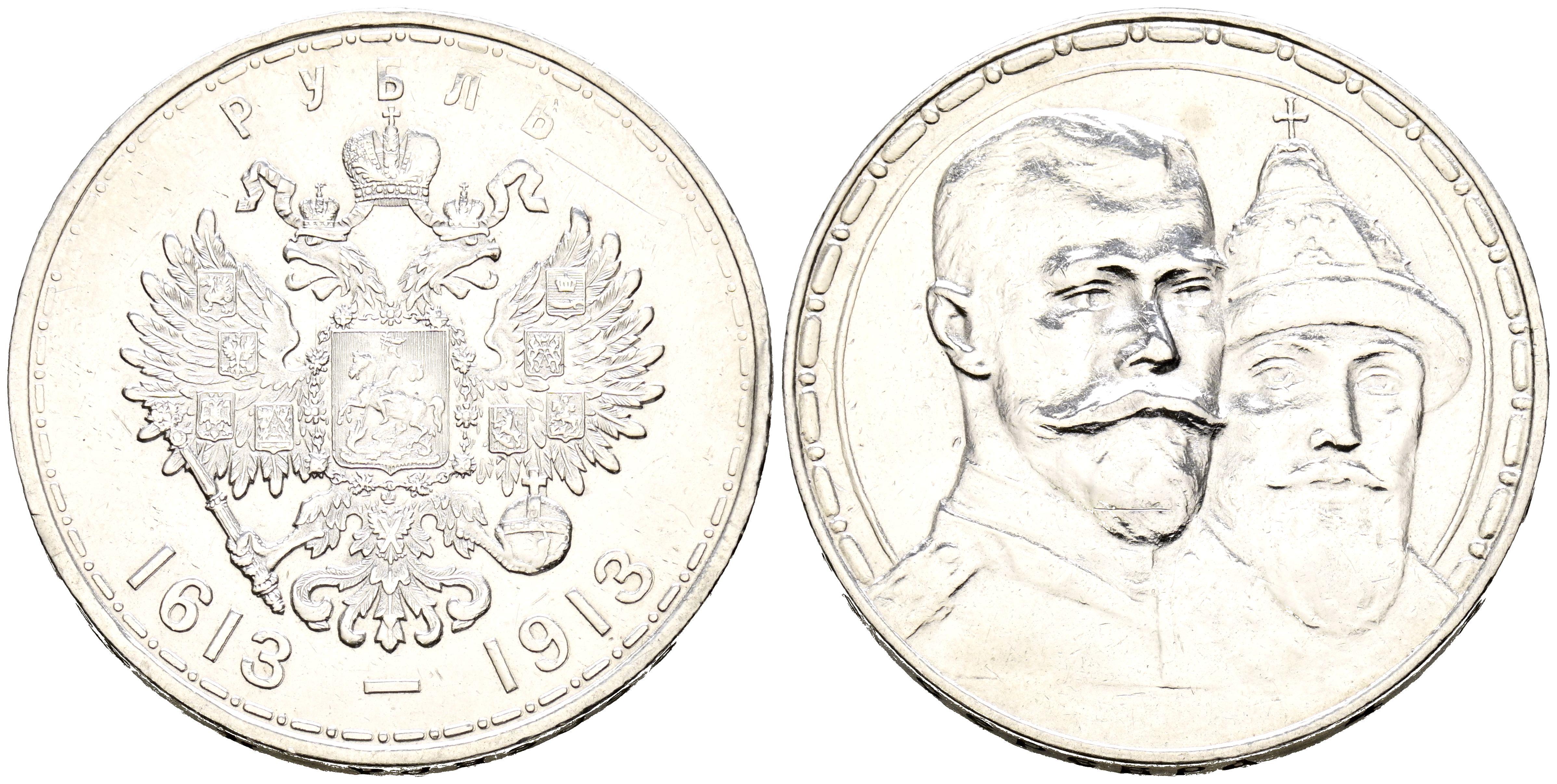 RUSIA, Nicolas III. 1 Rublo. (Ar. 20,00g/34mm). 1913. San Petersburgo. 300º Aniversario de la dinastía Romanov. (Km#70). MBC+. Escasa.