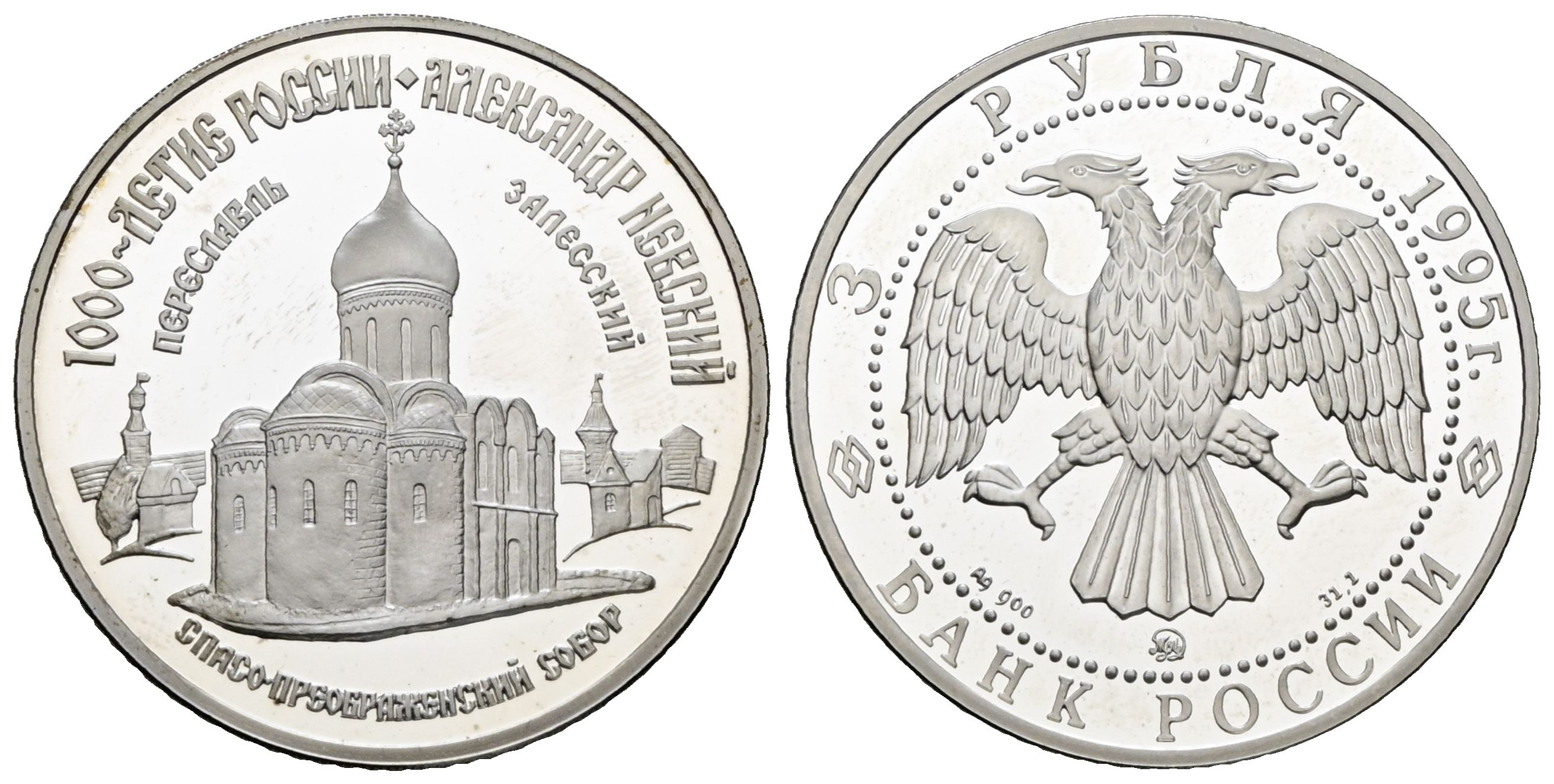 RUSIA. 3 Rublos. (Ar. 34,88g/38mm). 1995. Moscú. (Km#Y469). PROOF.