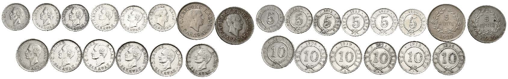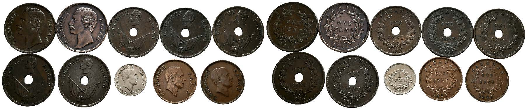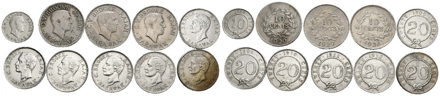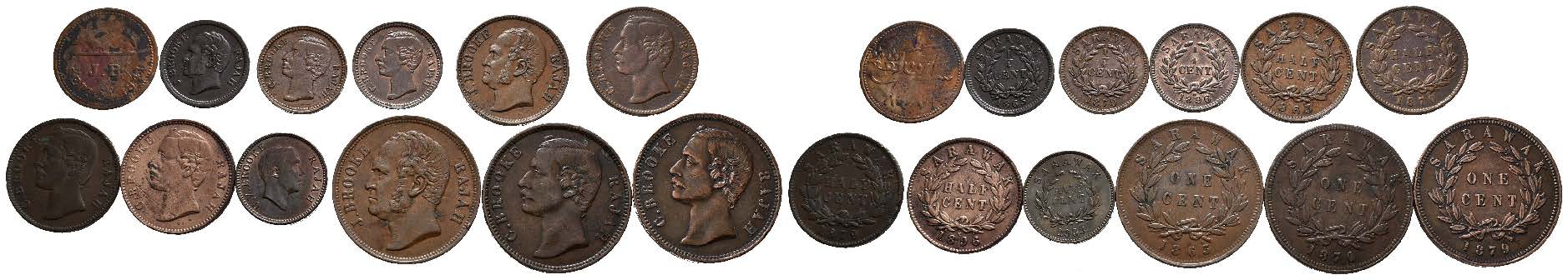 SARAWAK (Estado de Malasia). Magnífica colección formada por 65 monedas acuñadas entre 1863 y 1927. Durante este periodo encontraremos monedas acuñadas a nombre de tres Rajah´s diferentes: Sir James Brooke, Sir Charles Johnson Brooke y Sir Charles Vyner Brooke. Los módulos representados van desde los cotizados 1/4 de Cent, en cobre, hasta los 50 Cents acuñados en plata, pasando por una gran cantidad de divisores. Las conservaciones son diversas, destacando algunas piezas en alto nivel de conservación. El conjunto incluye una reproducción de época del cotizado token de época de 1841. A EXAMINAR.