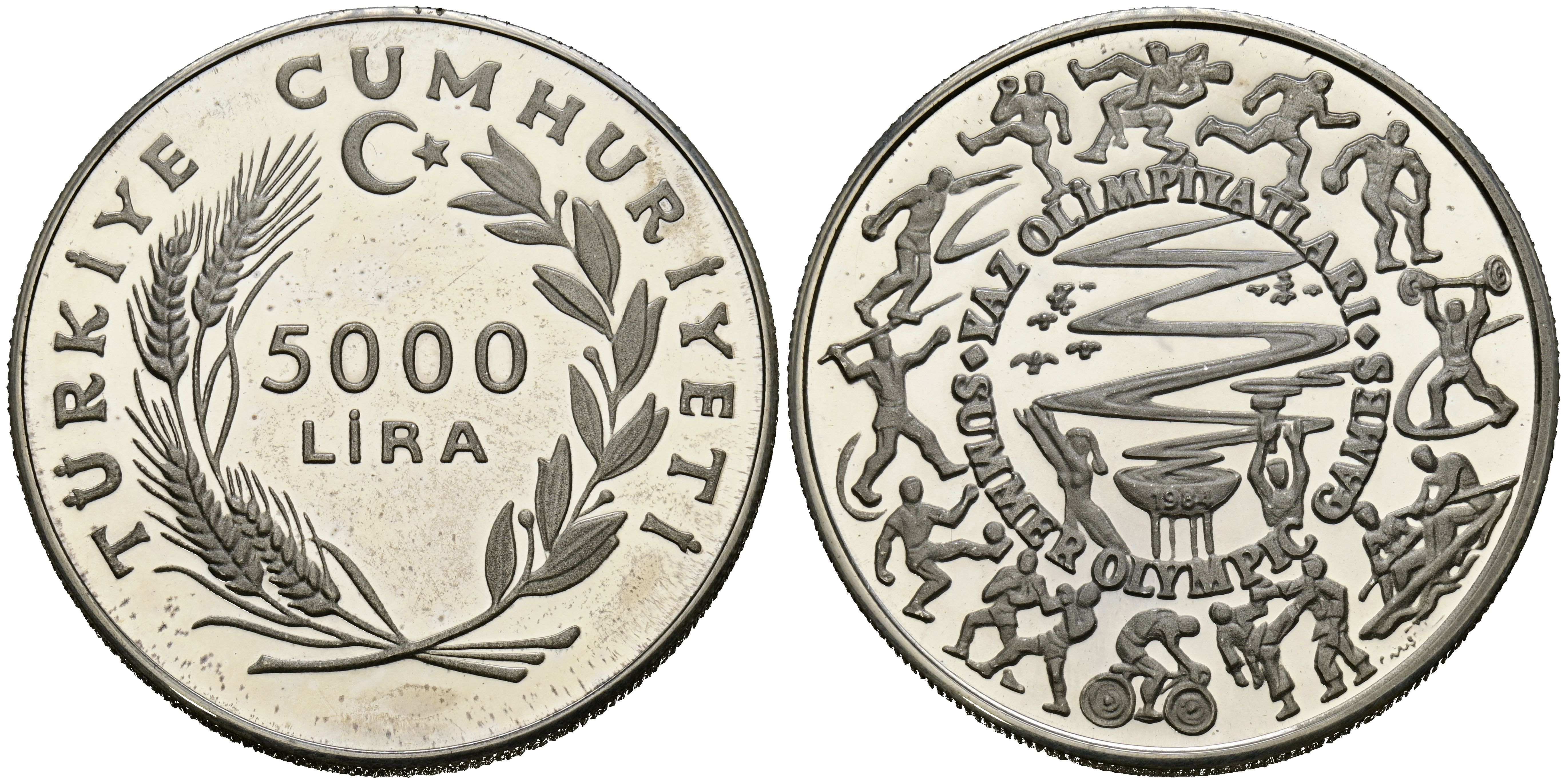 TURQUÍA. 5000 Liras (Ar. 23,19g/39mm). 1984. Muhammad V. PROOF.