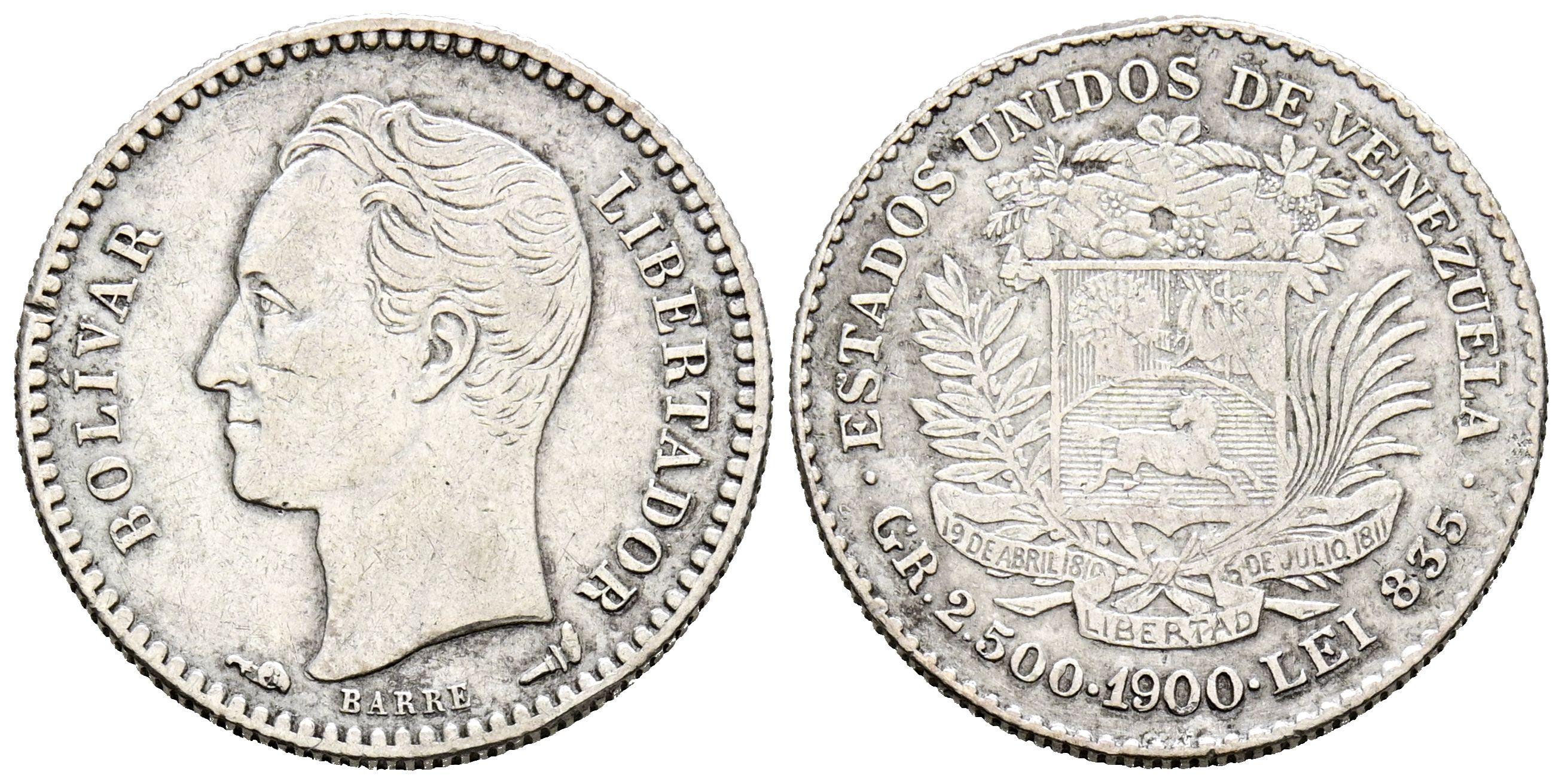 VENEZUELA. 50 Céntimos. (Ar. 2,50g/18mm). 1900. París. (Km#21). MBC+.