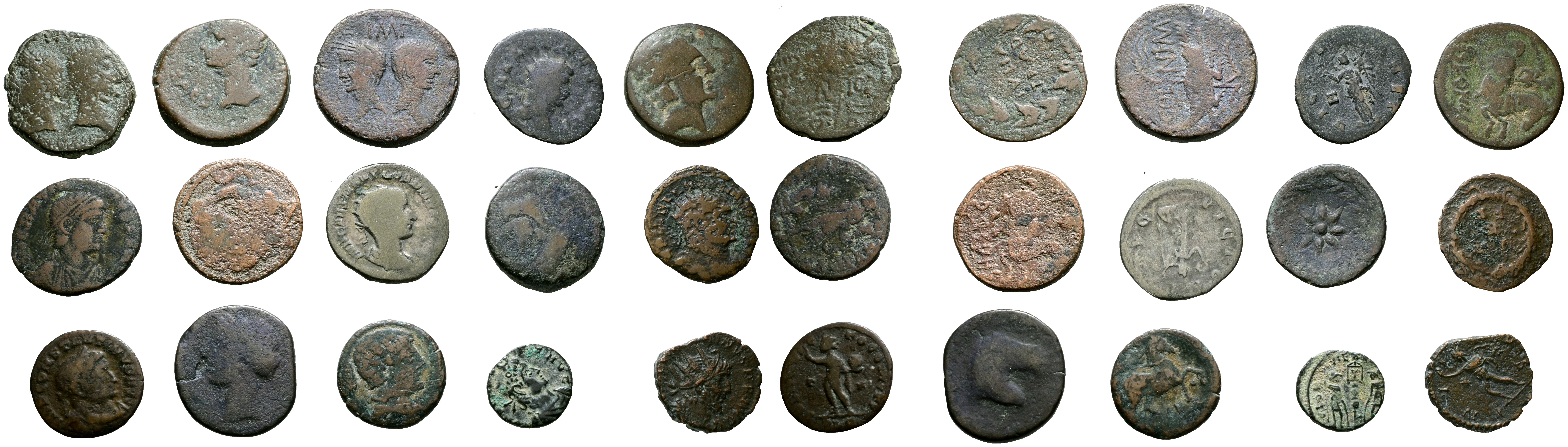 IMPERIO ROMANO. Interesante conjunto formado por 15 monedas romanas y cecas béricas. Diferentes módulos, pesos y estados de conservación. A EXAMINAR.
