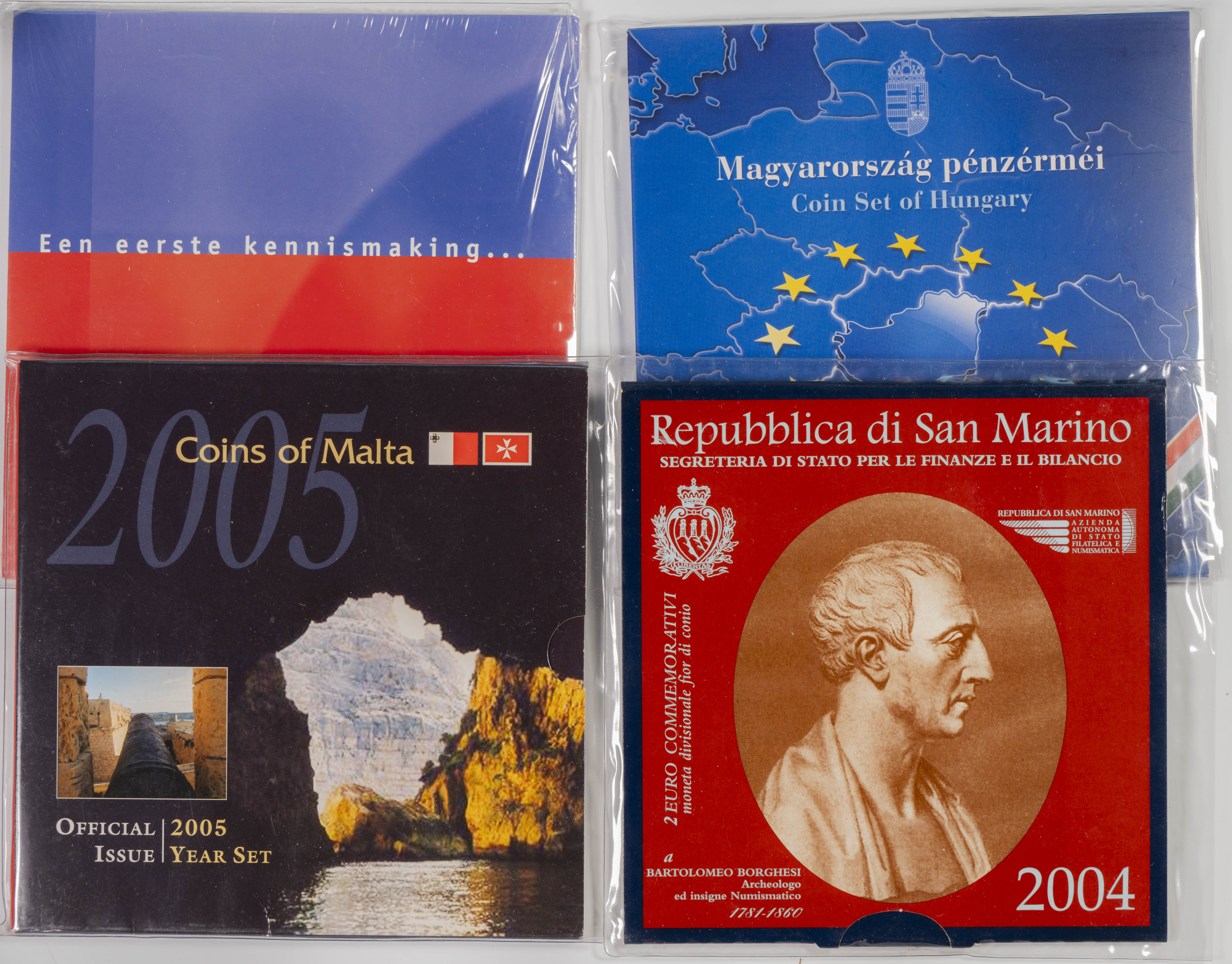 MONEDAS MUNDIALES. Interesante y muy variado resto de colección compuesto por 24 eurosets y acuñaciones conmemorativas de diferentes fechas y países entre los que encontramos: San Marino, Malta, Grecia, Alemania, Luxenburgo, Países Bajos, Hungría, Estados Unidos, Sudáfrica y España. A EXAMINAR.