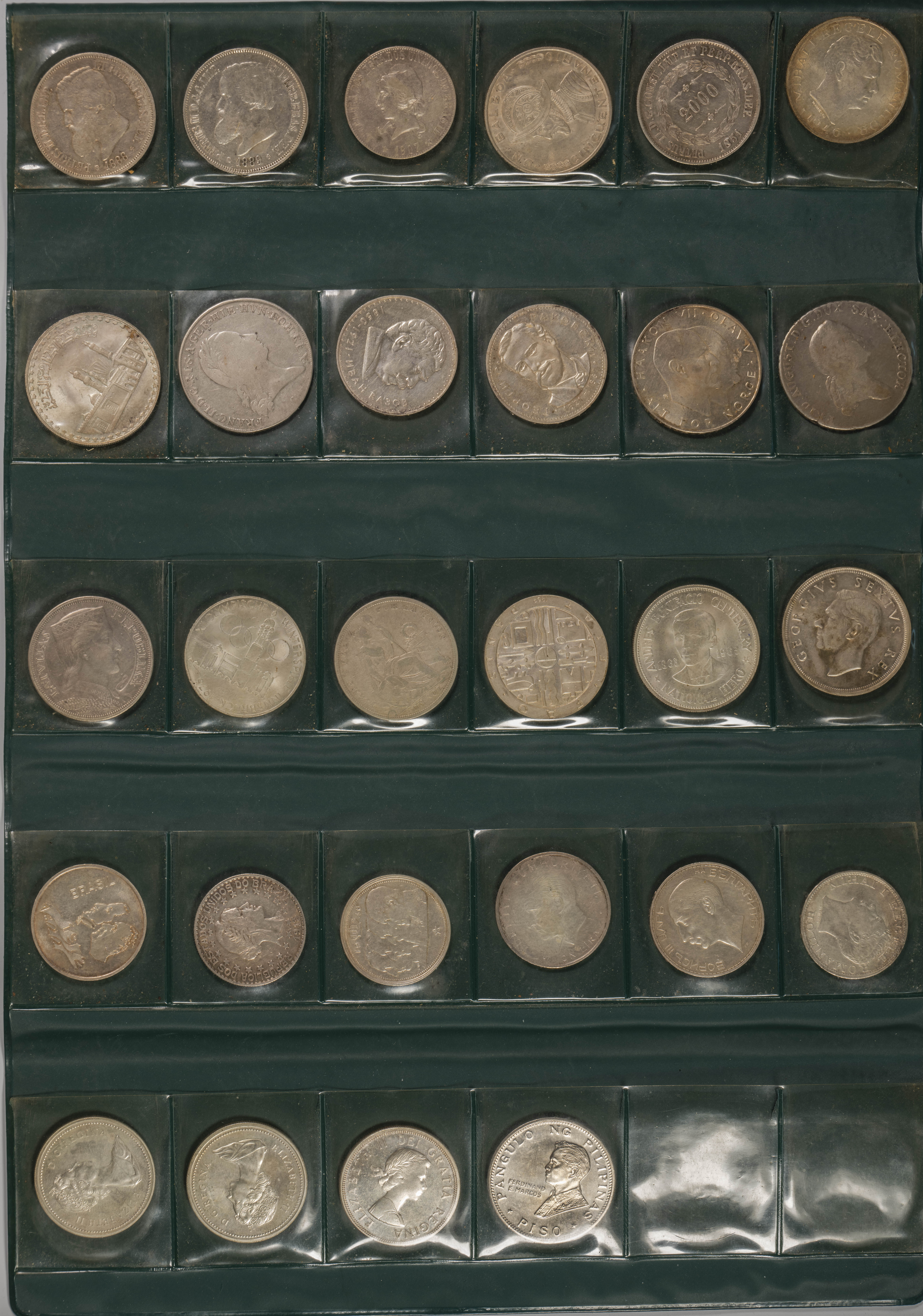 MONEDAS EXTRANJERAS. Interesante conjunto de 28 piezas en plata, un buen número de ellas en módulo tamaño duro, con una gran variedad de países representados, destacando especialmente Brasil. Ejemplares acuñados entre los siglos XVIII y XX. Incluye estuche. Diferentes estados de conservación. A EXAMINAR.