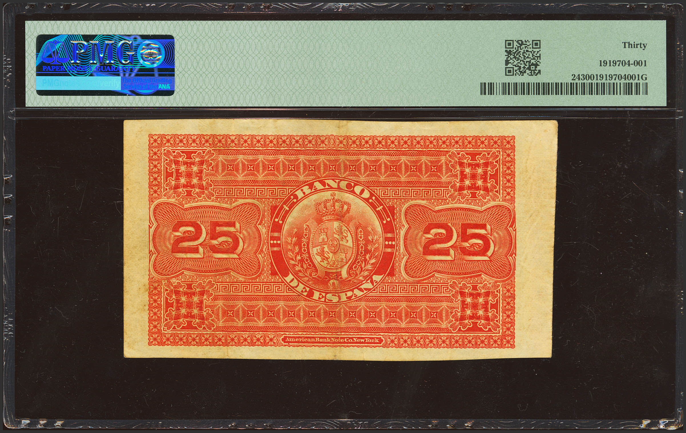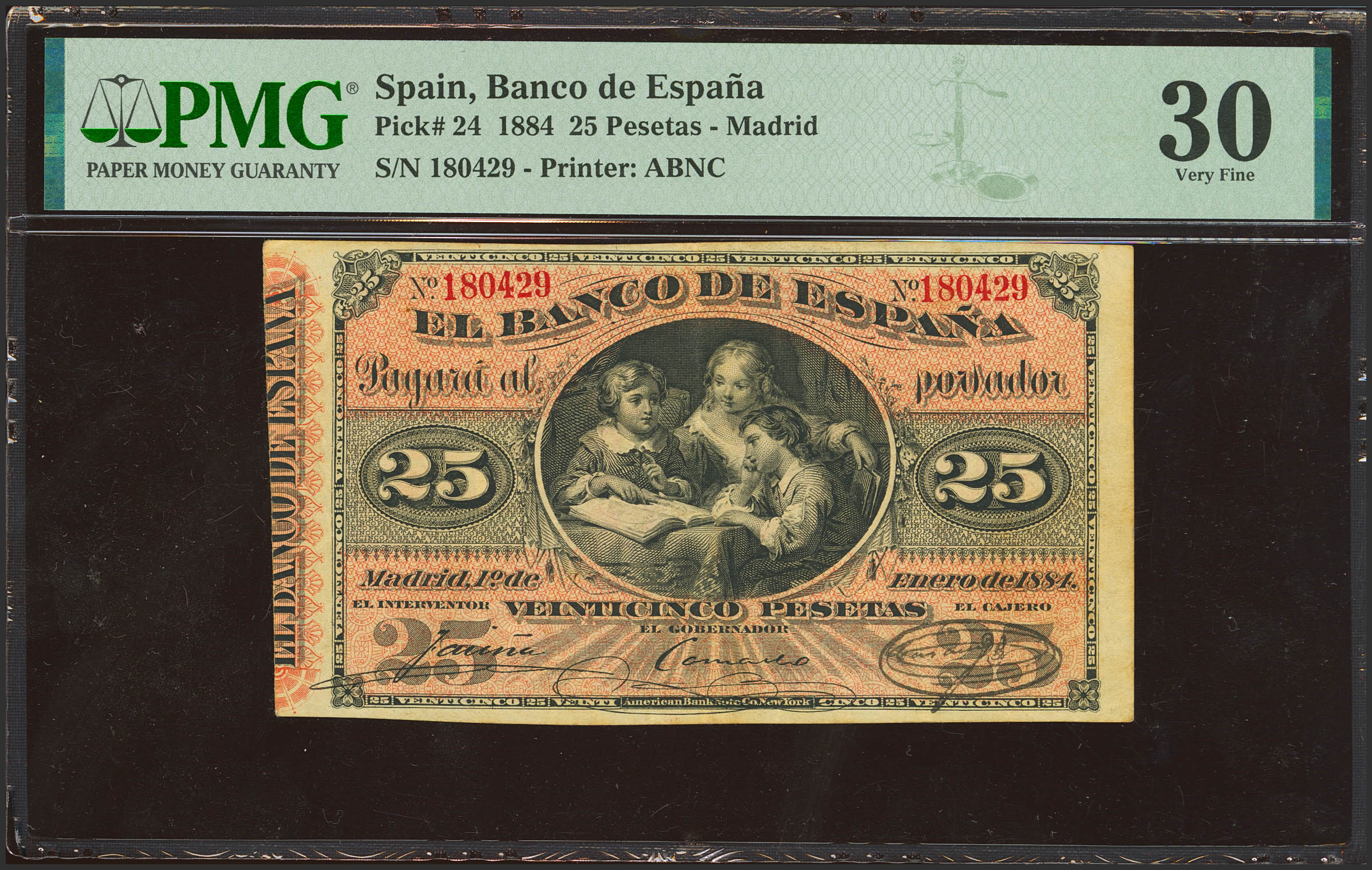 25 Pesetas. 1 de Enero de 1884. Sin serie. (Edifil 2023: 282, Pick: 24). Inusual, especialmente sin reparaciones. MBC+. Encapsulado PMG30. Ex-colección subasta Caja Madrid.